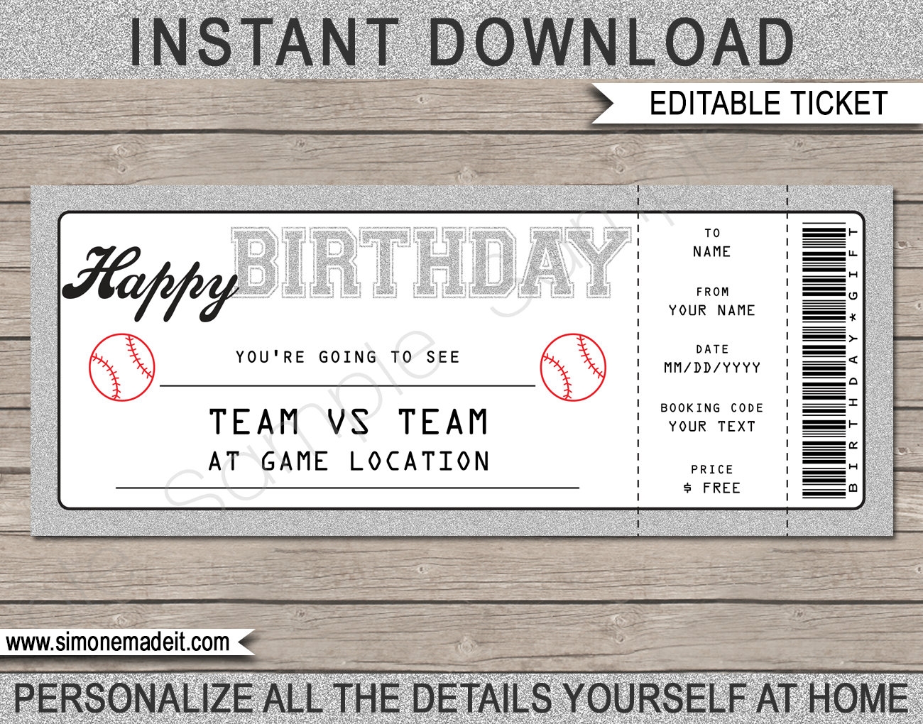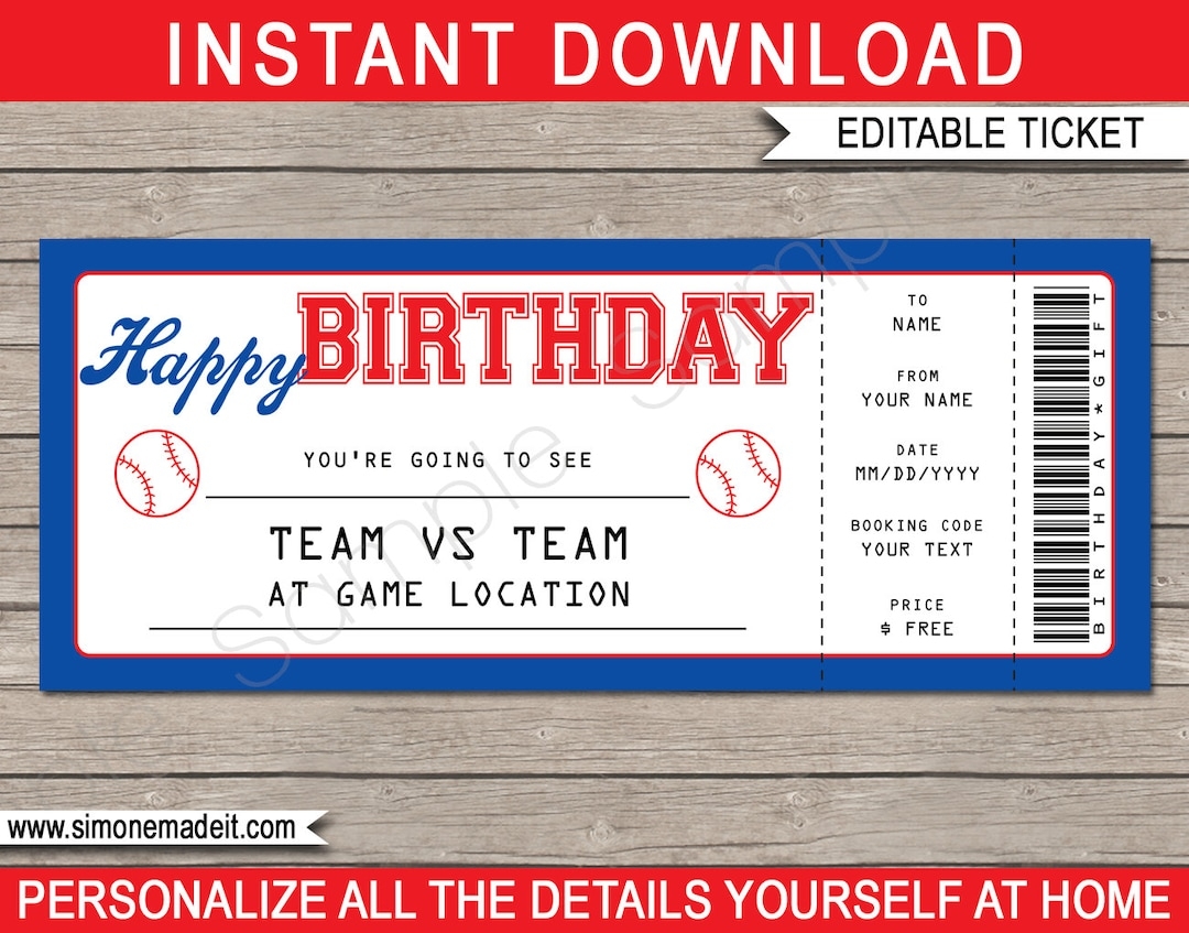 Baseball Ticket Birthday Gift Surprise Ticket To A Baseball Game Printable Template Gift Voucher Coupon EDITABLE TEXT DOWNLOAD Etsy