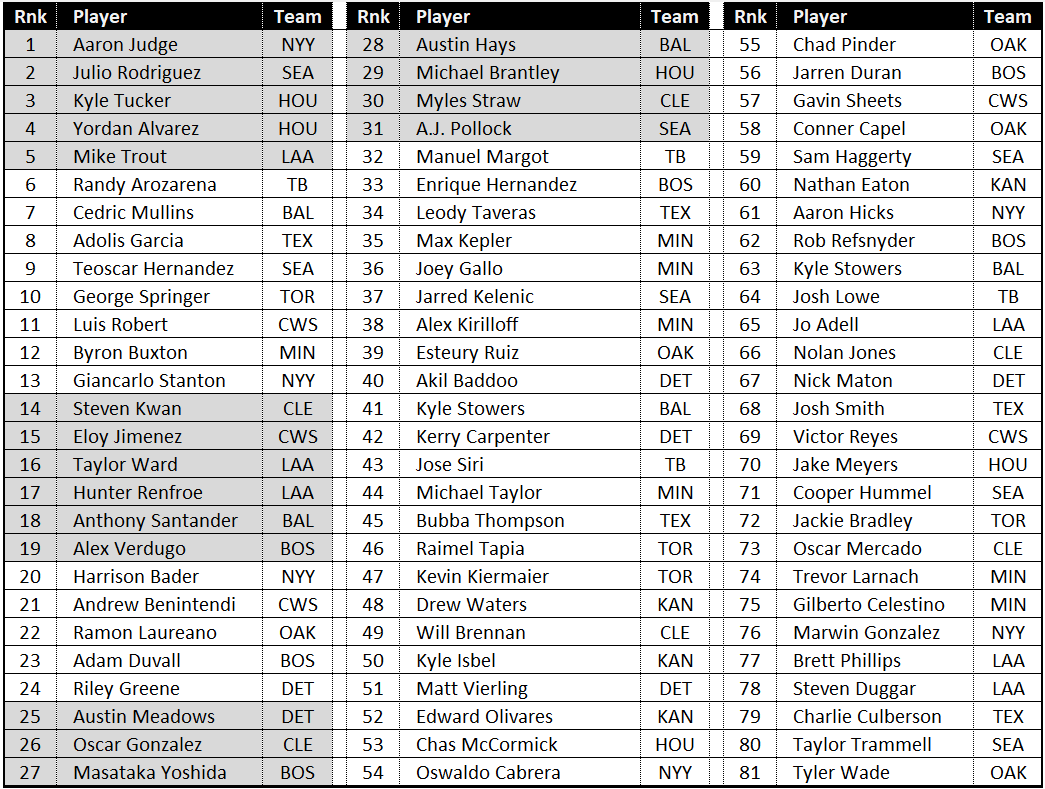 2023 AL Only Fantasy Baseball Rankings FantraxHQ