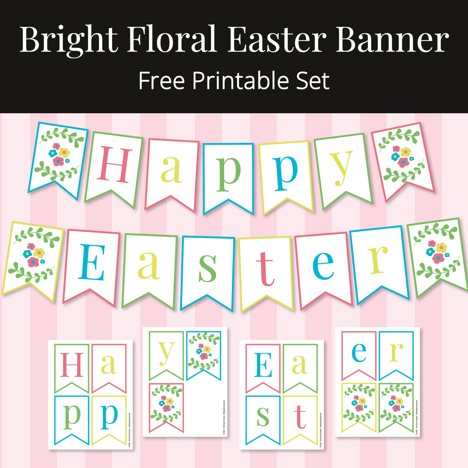 Bright Floral Happy Easter Banner Free Printable For Spring Decor Celebrations