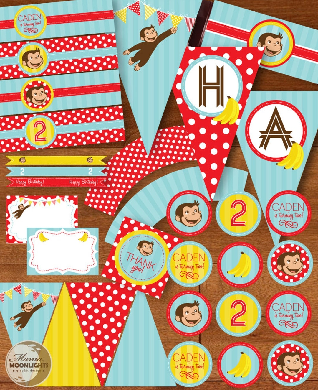 Curious George Inspired Birthday Party Favors Decor Printable Package DIY Bananas Red Blue Yellow Etsy