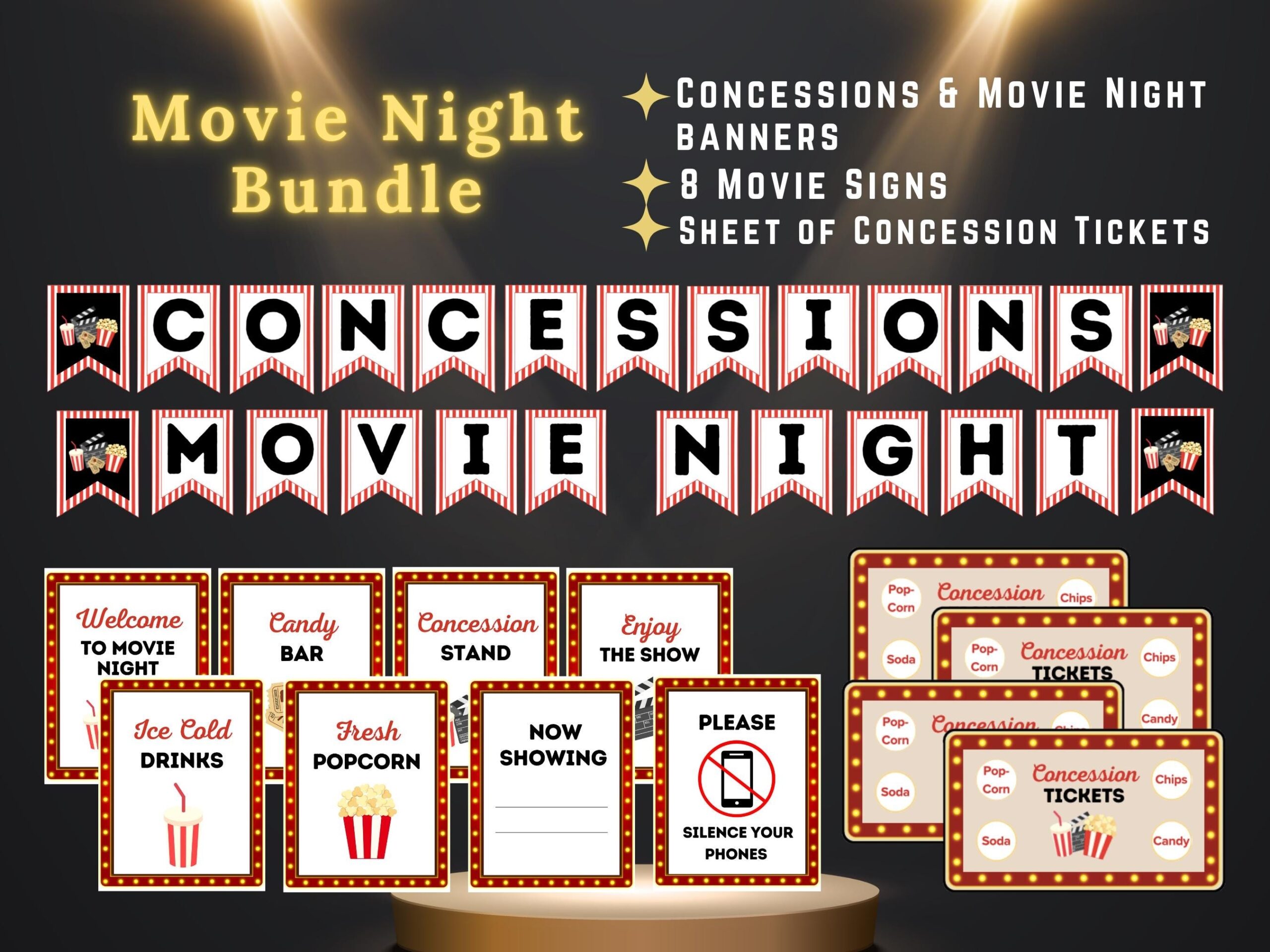 MOVIE NIGHT And CONCESSION Printable Party Banner And Decoration Add Style To Your Next Family Or Fundraiser movie Night Instantly Etsy