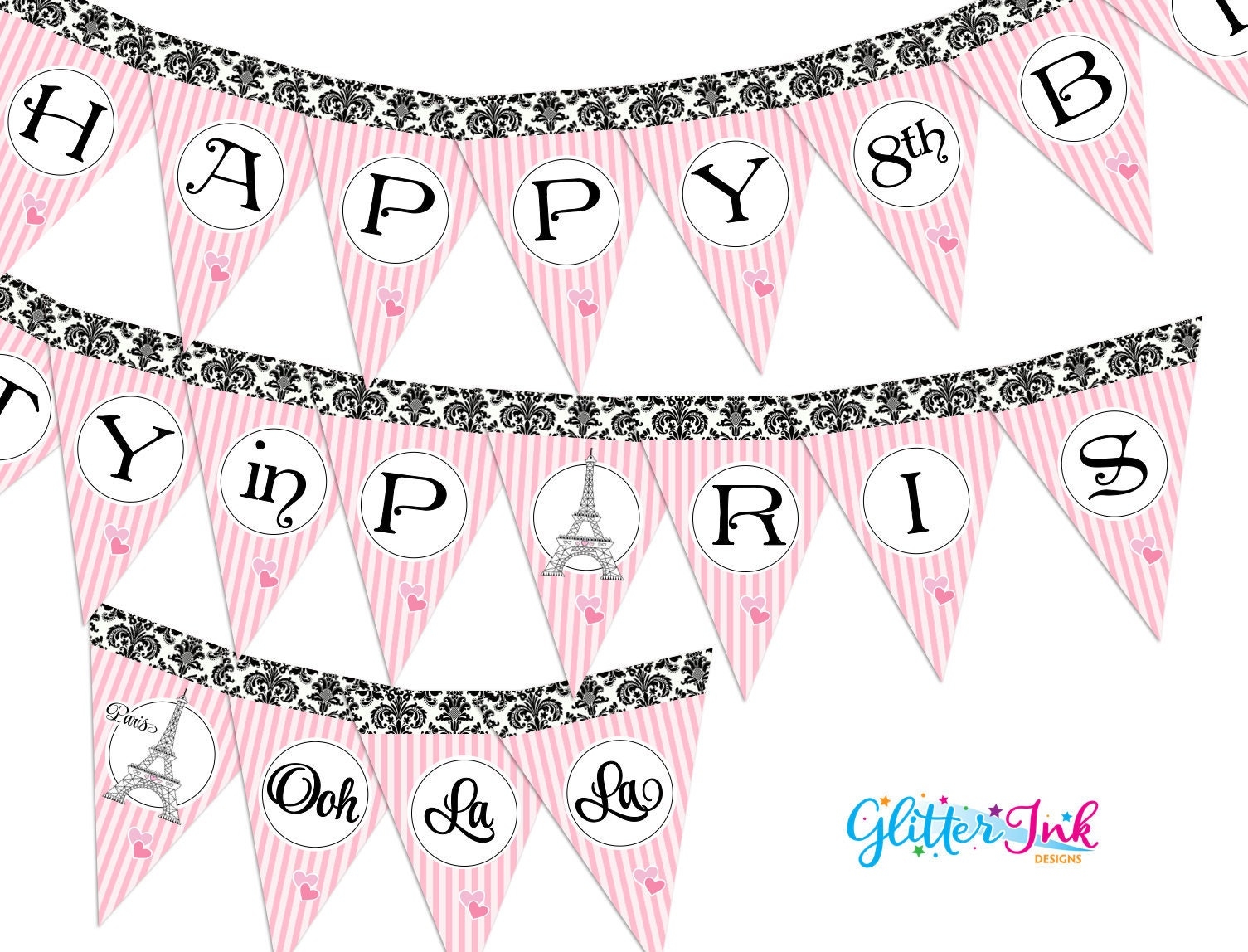 Paris Party Printable Banner French Themed Birthday Decor Party In Paris Decorations Pink Black Eiffel Tower Ooh La La Sweet 16 Spa Etsy
