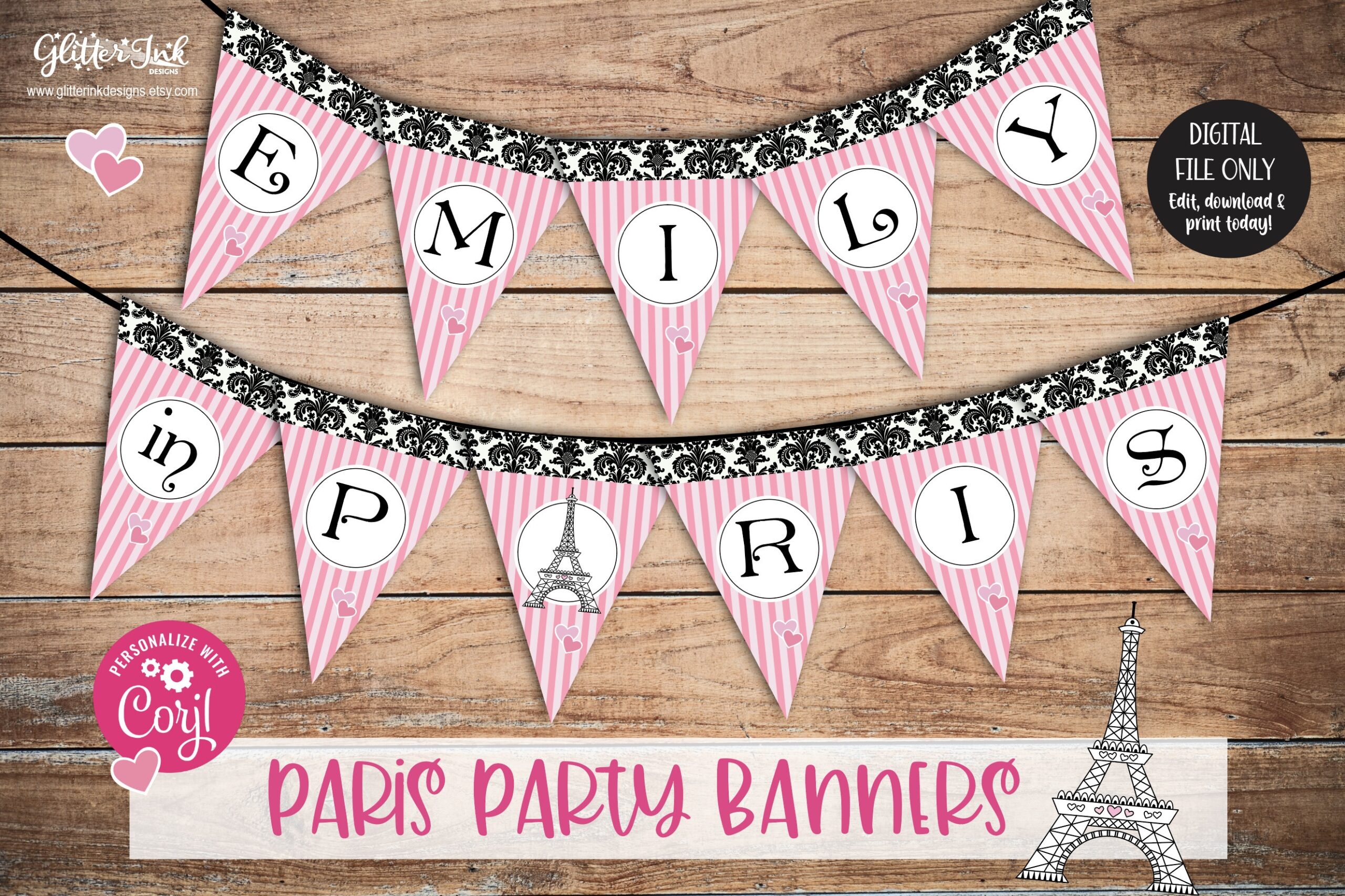 Whether you’re hosting a Paris-themed birthday party for kids or adults, our printable banner is versatile and suitable for all ages. It’s a great way to create a cohesive look for your party decor without breaking the bank.