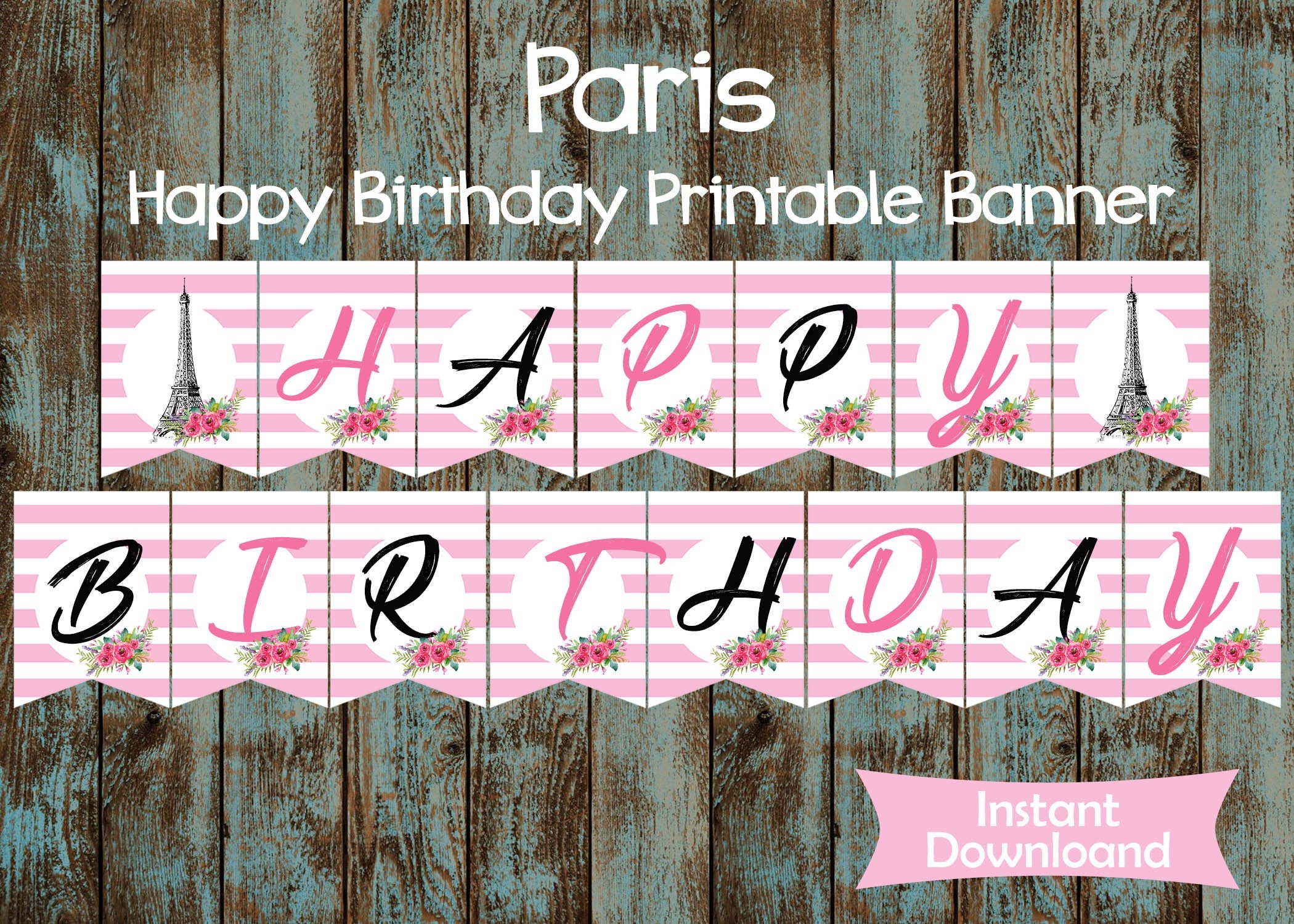 Printable Paris Happy Birthday Banner Paris Banner Paris Party Supplies Paris Banner Paris Birthday Decorations Paris Party Banner Etsy