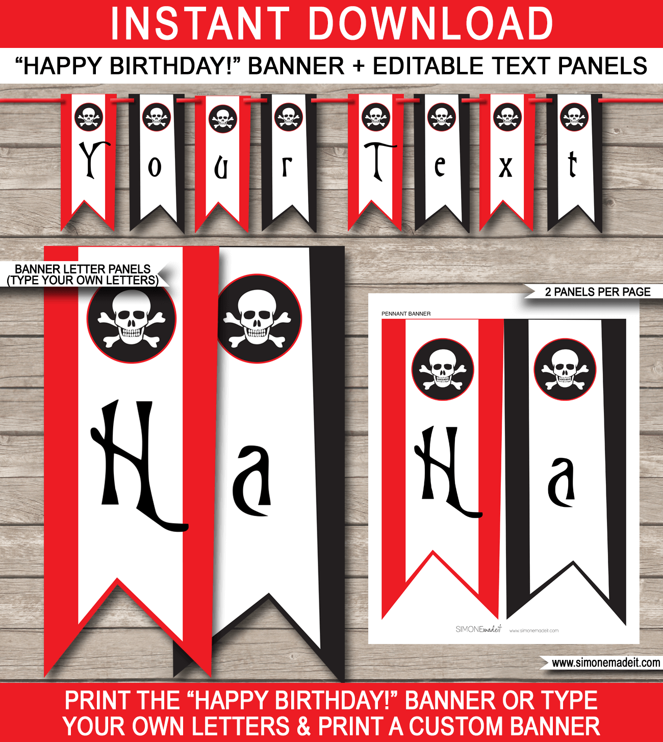 Pirate Party Banner Template Printable Happy Birthday Pennant Banner