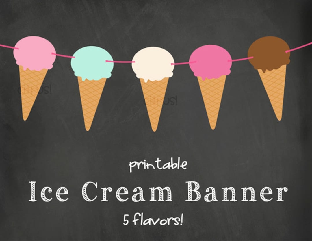 Ice Cream Cones Banner Printable Ice Cream Party Ice Cream Social Etsy