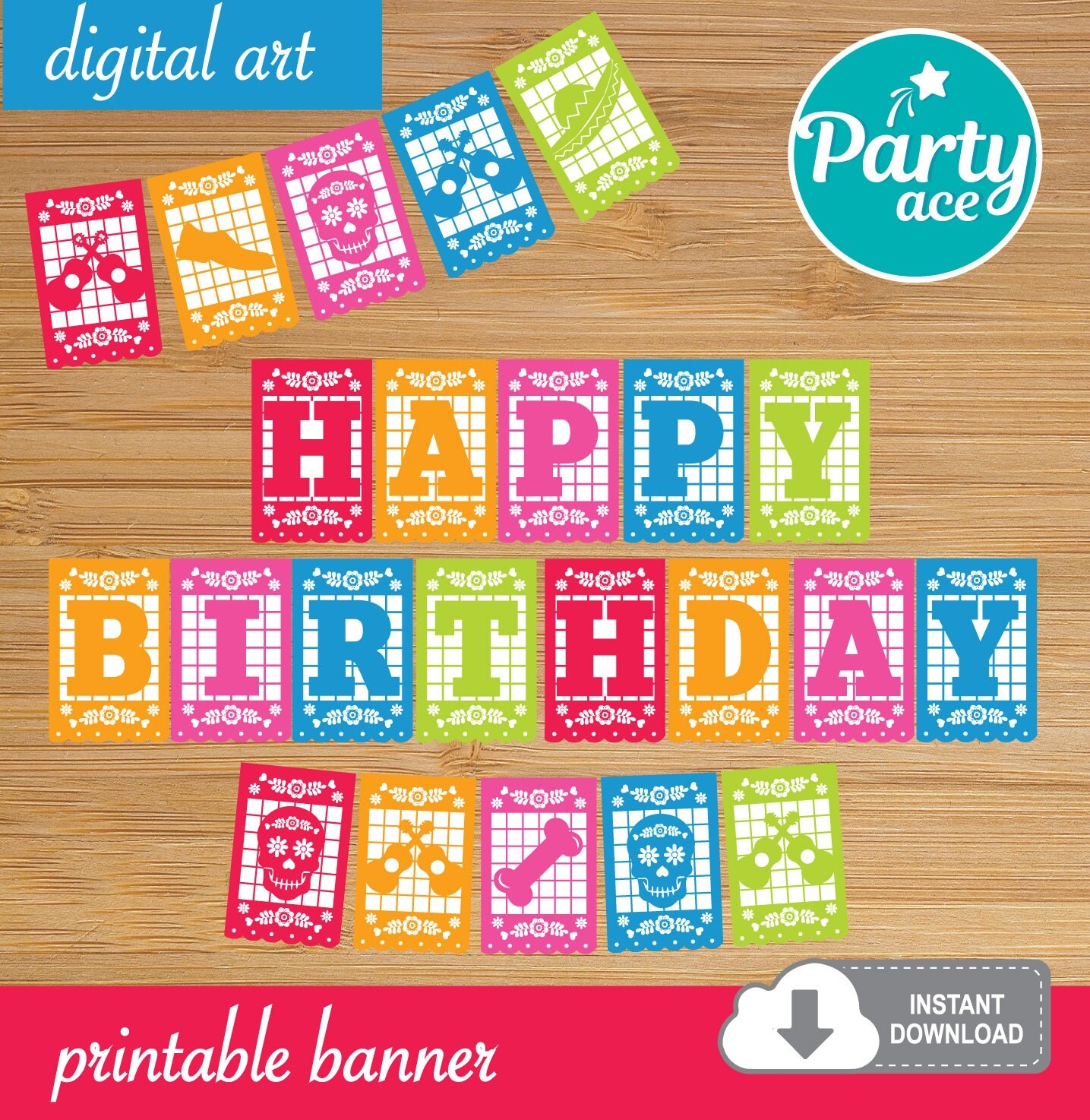 Mexican Happy Birthday Printable Banner For Party Decoration Coco Printable Banner Fiesta Mexicana Papel Picado Cinco De Mayo Coco Party Etsy