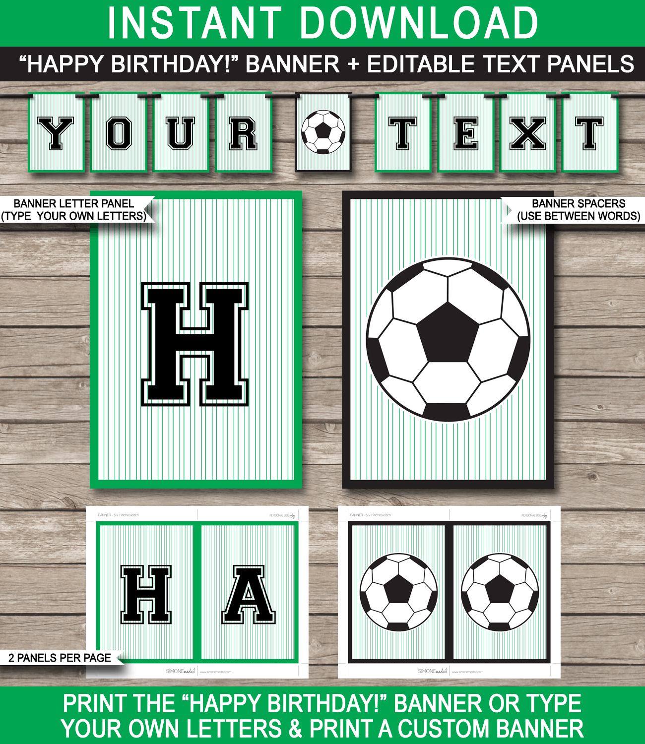 Soccer Party Banner Template Printable Happy Birthday Pennant Banner