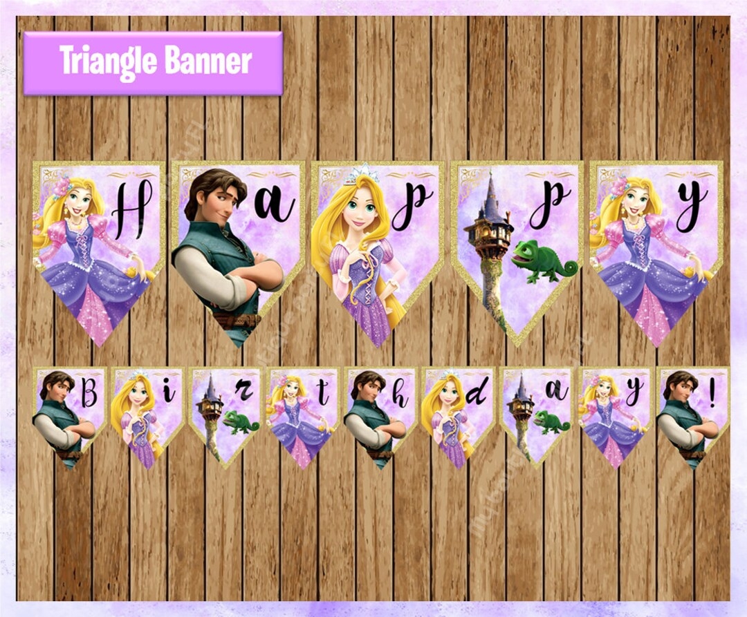 Princess Rapunzel Banner Printable Princess Triangle Banner Tangled Party Banner Instant Download Etsy