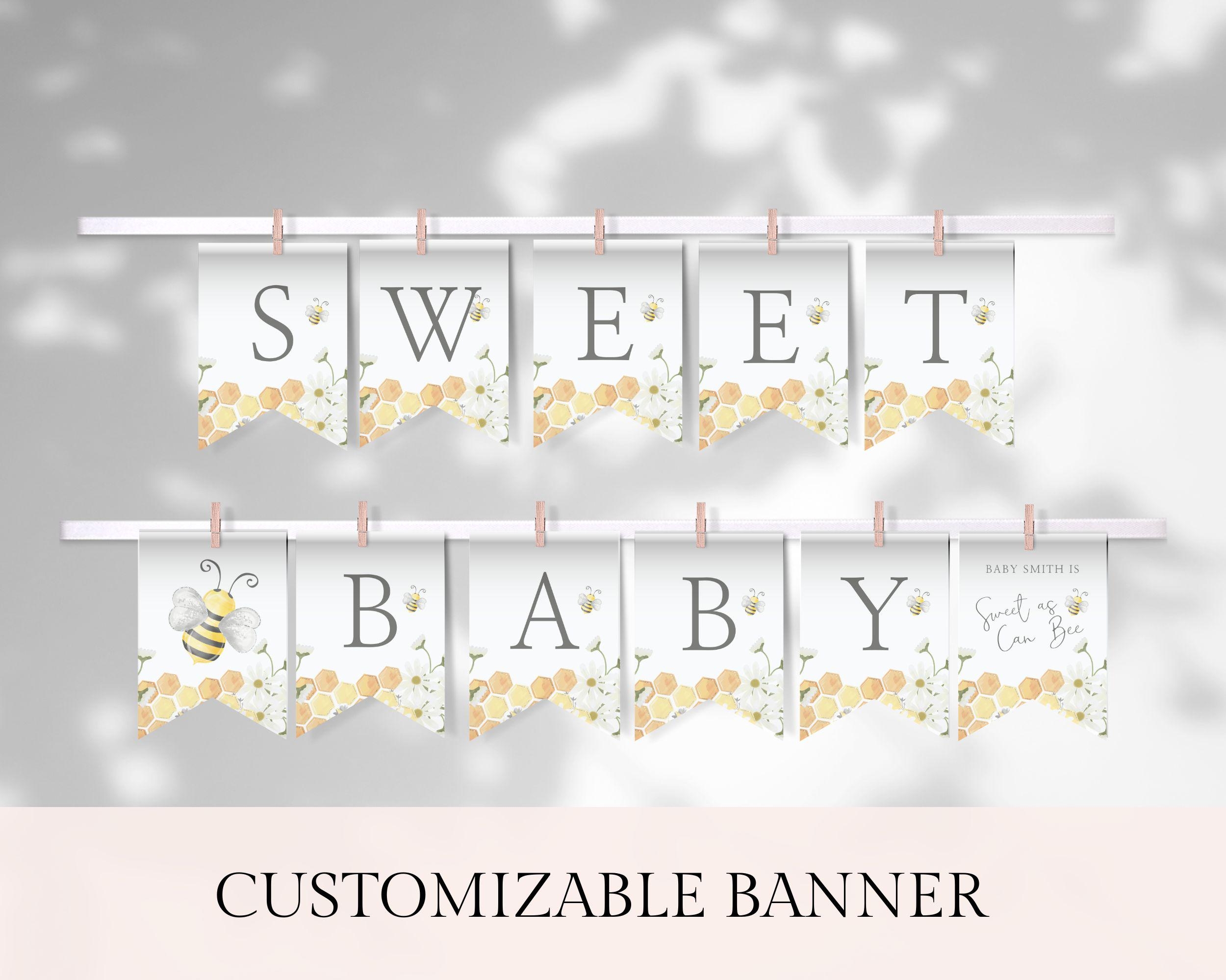 Baby Shower Banner Sweet As Can Bee Sweet As Can Bee Bunting Banner Bee Banner Editable Template Templett Bee Baby Shower Decor Sacb Etsy