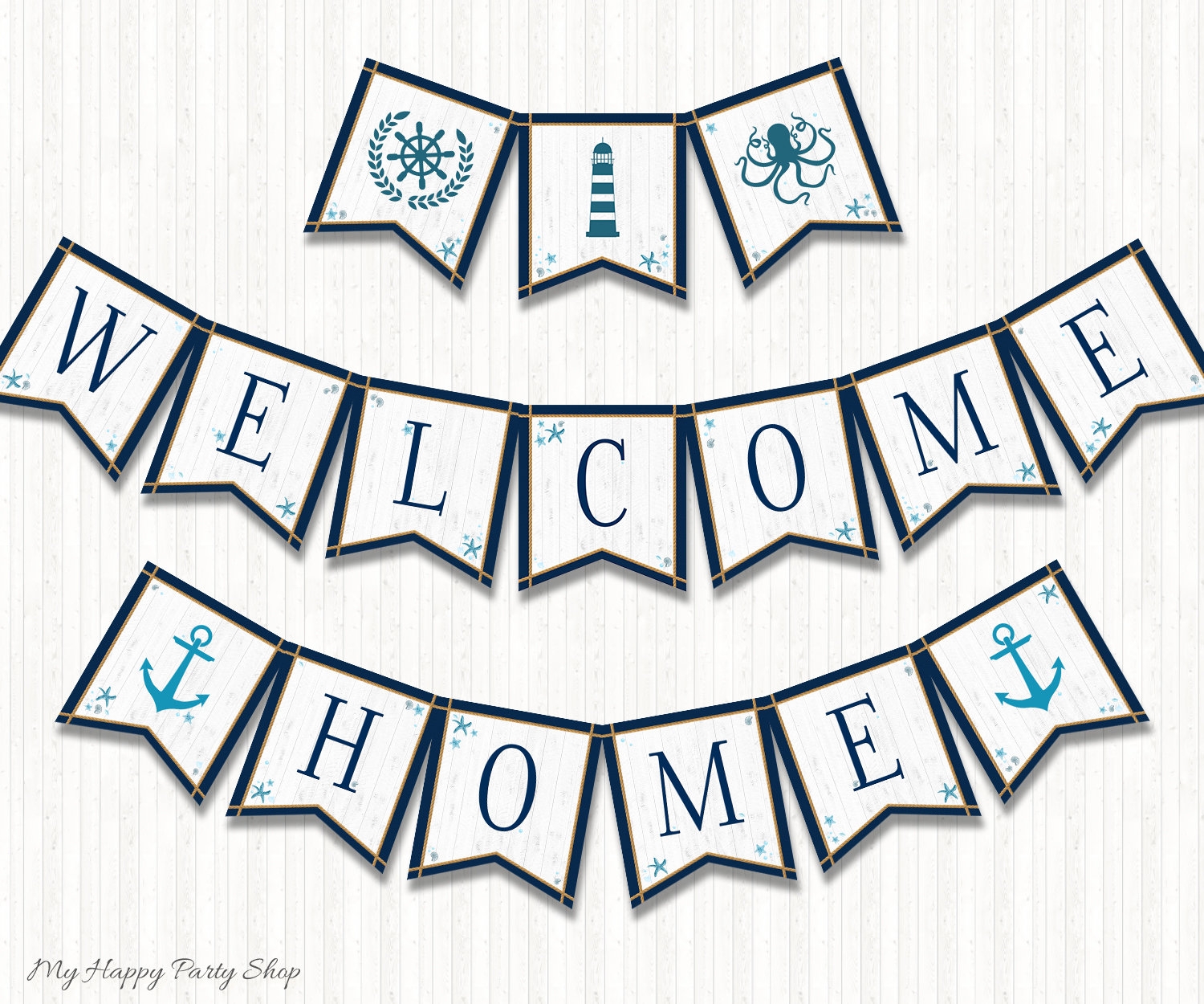 Welcome Home Banner PRINTABLE Nautical Banner Anchor Banner Homecoming Banner Welcome Back Navy INSTANT DOWNLOAD Digital BSB013 Etsy