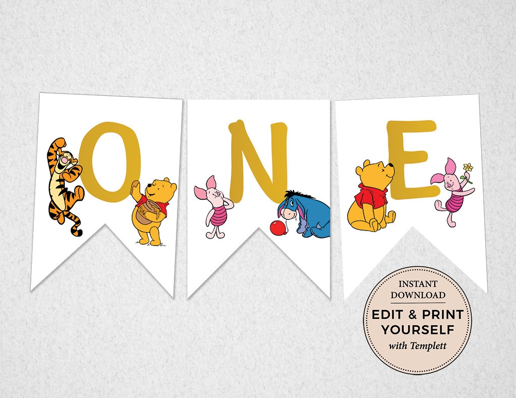 Editable Banner Classic Winnie The Pooh happy Birthday Party Banner Hundred Acre Wood Hive Yellow Design DIY Digital 0001 WHY Etsy