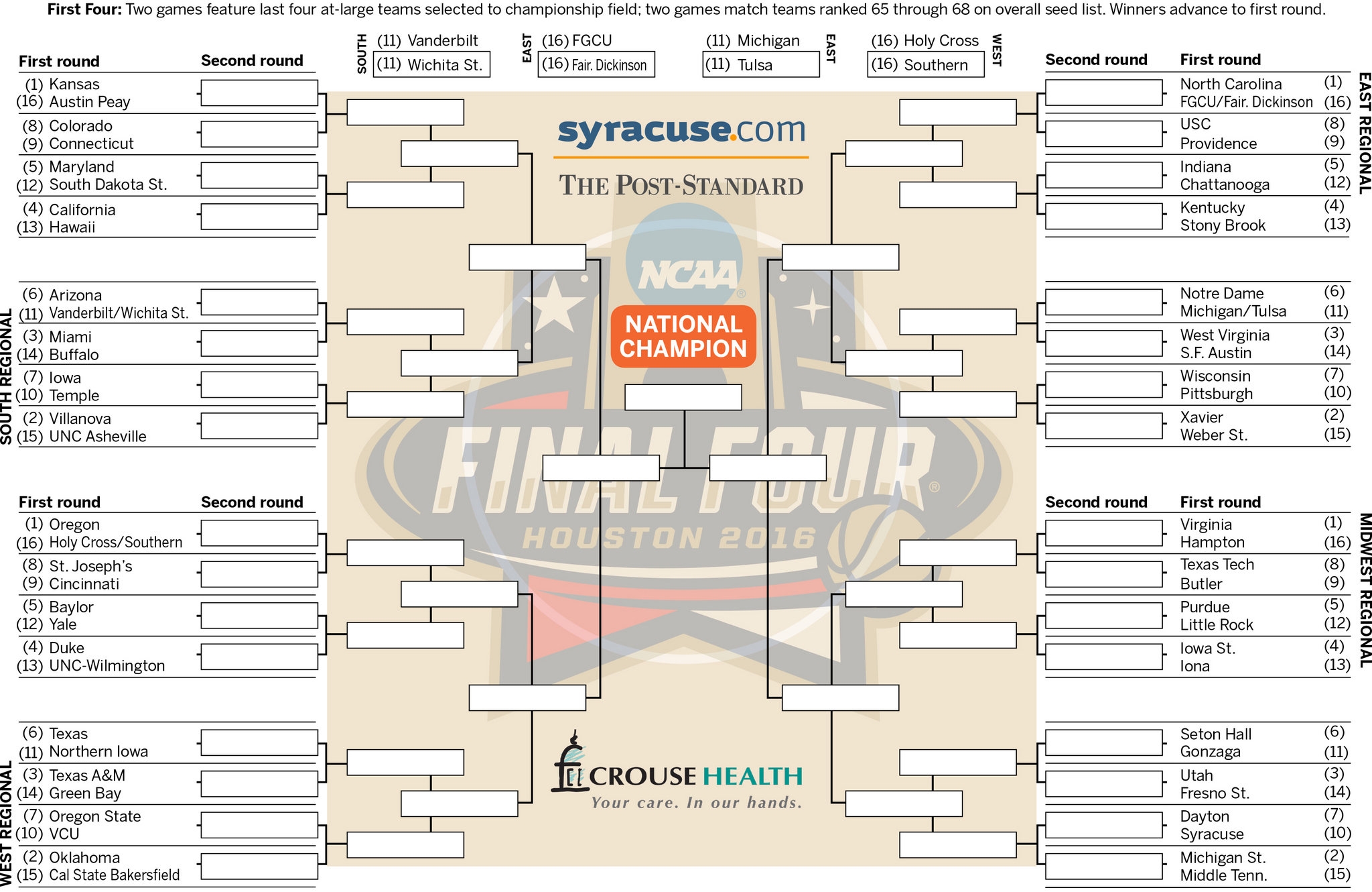 2016 NCAA Tournament Bracket Print Download Updated March Madness Pairings Syracuse