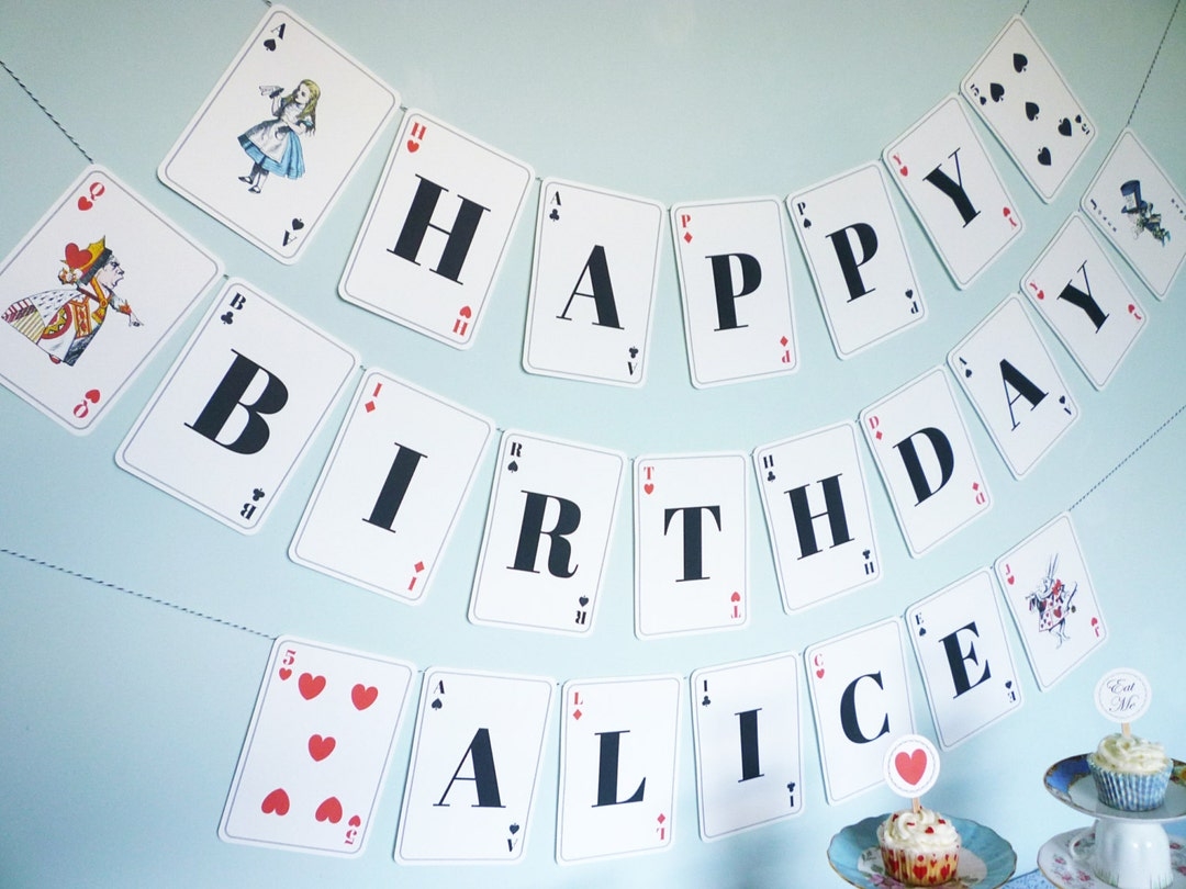 Alice In Wonderland Banner Playing Card Printable Banner Diy Personalized Birthday Party Editable PDF Digital Files Etsy