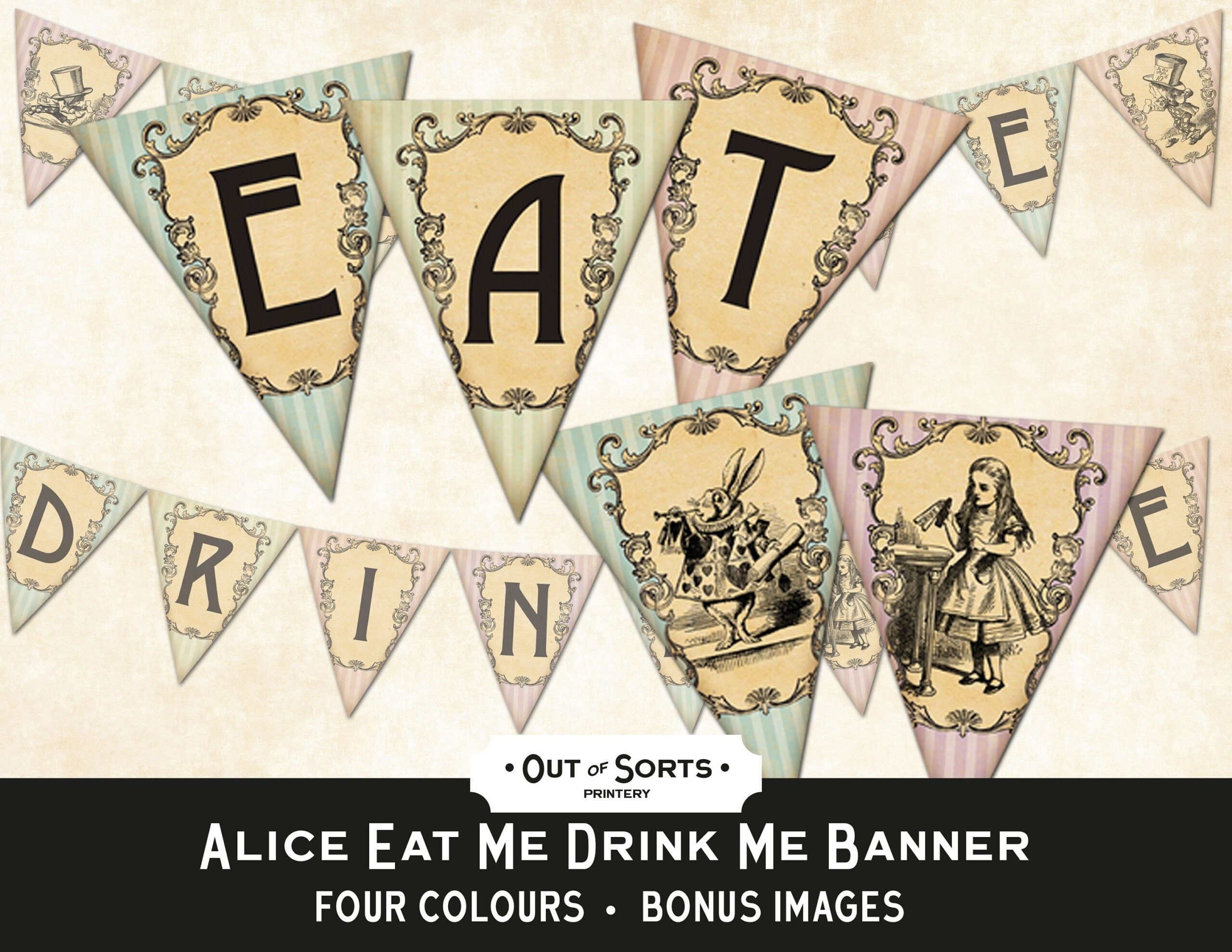 Alice In Wonderland Eat Me Drink Me Banner Printable Bunting Party Decor JPEG Etsy