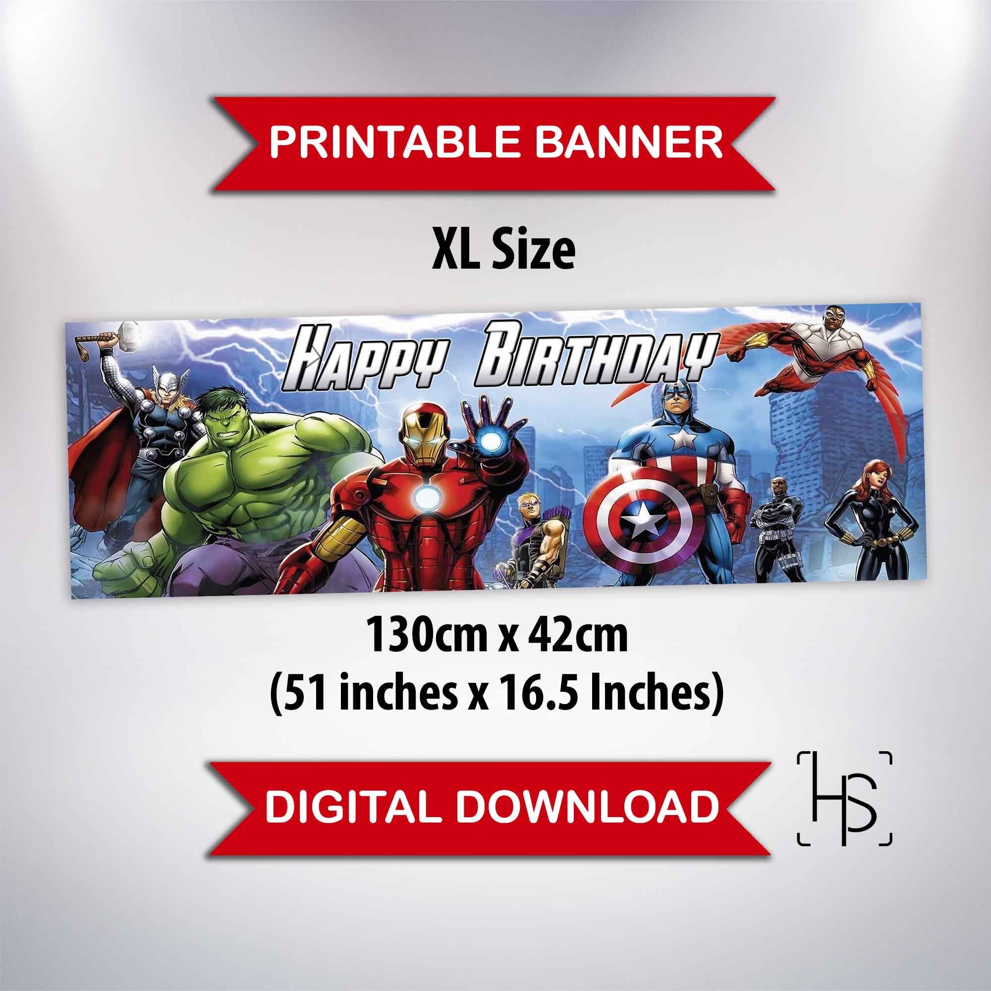 XL Marvel Avengers Digital Download Banner Birthday Printable In Store Etsy