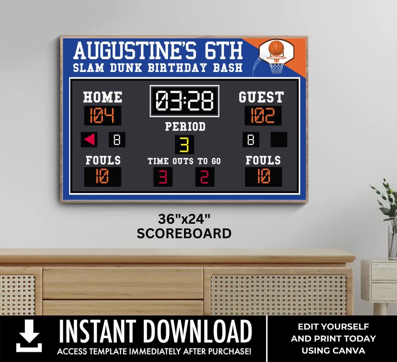 Basketball Scoreboard Printable 36 x24 Poster Scoreboard Sign Basketball Birthday Edit Using CANVA INSTANT Download Printable Etsy
