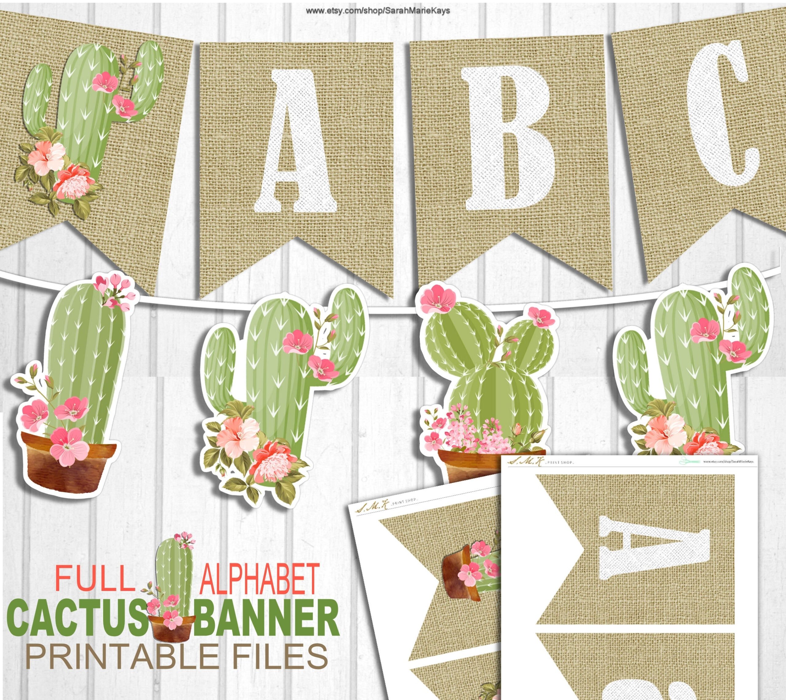 Cactus Full Alphabet Banner Printable Cactus Banner Boho Banner Llama Cactus Banner Burlap Boho Cactus Banner Etsy