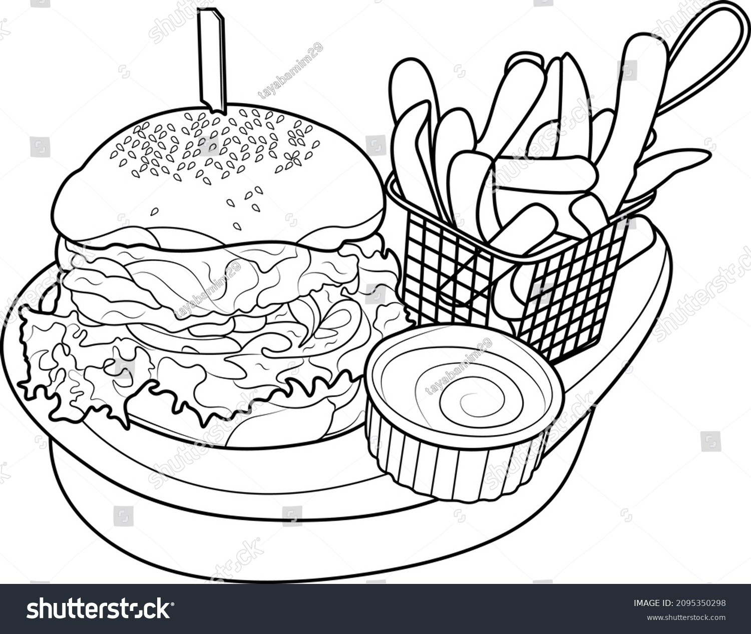 Yummy Fast Food Coloring Pages Kids Stock Vector Royalty Free 2095350298 Shutterstock