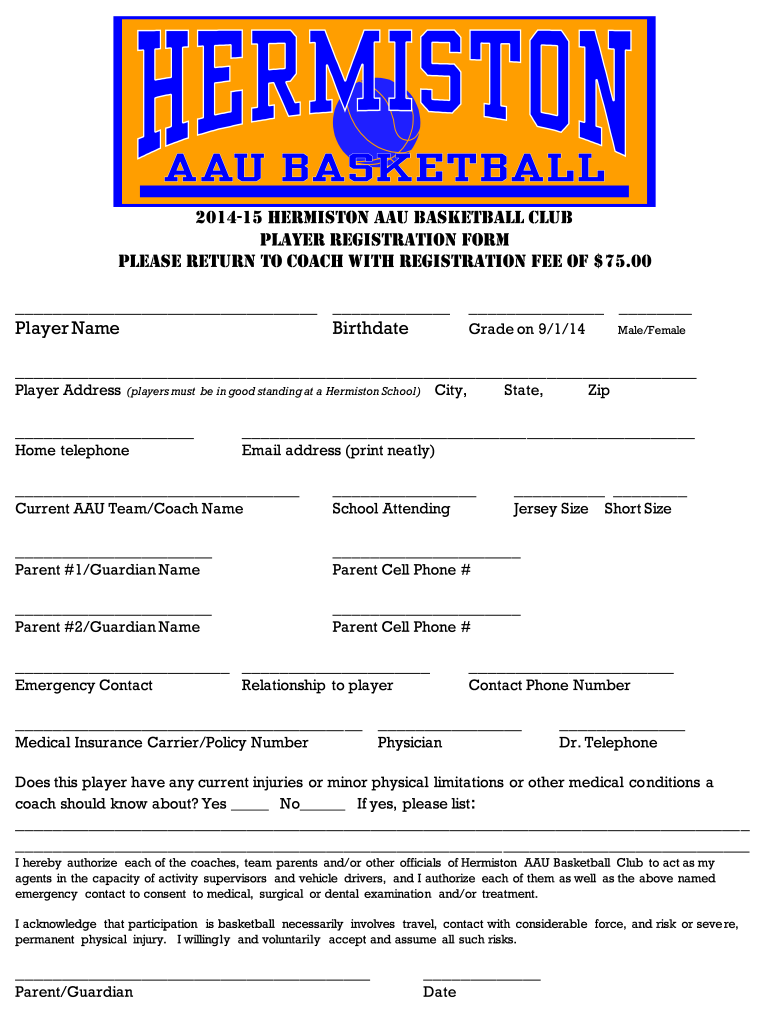 Basketball Registration Form Fill Out Sign Online And Download PDF Templateroller