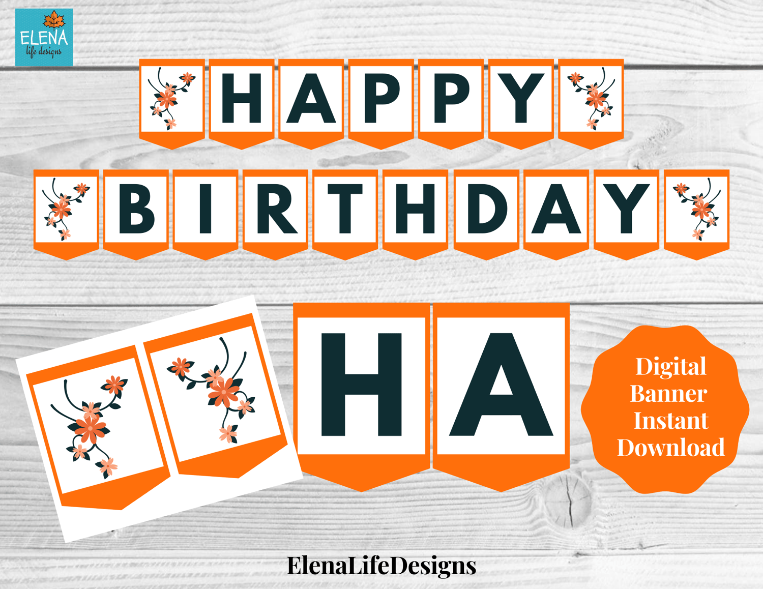 Floral Birthday Banner Orange Flower Printable Banner Instant Download Digital Banner Personalized Floral Decorations Happy Birthday Payhip