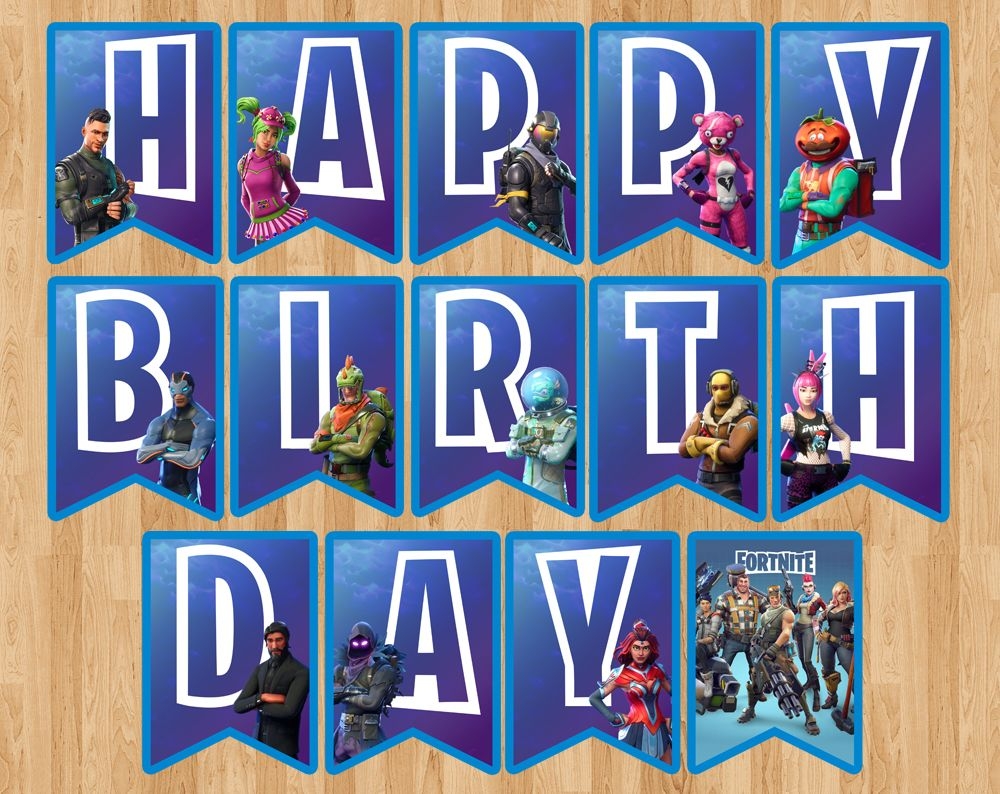 Fortnite Birthday Banner Fortnite Flag Pennant Party Badge Bunting Printable Display Digital File