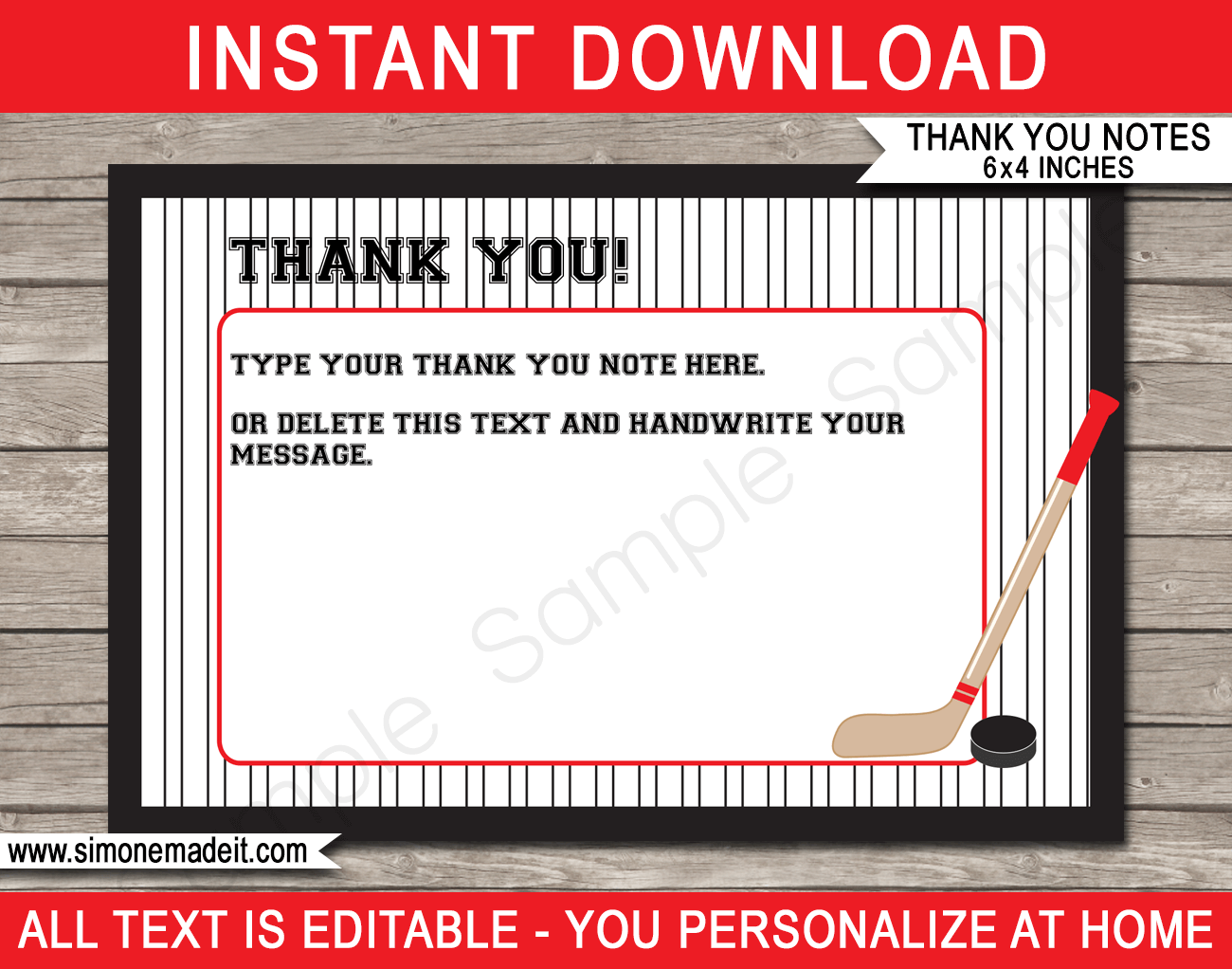 Printable Hockey Thank You Cards Template Hockey Birthday Party