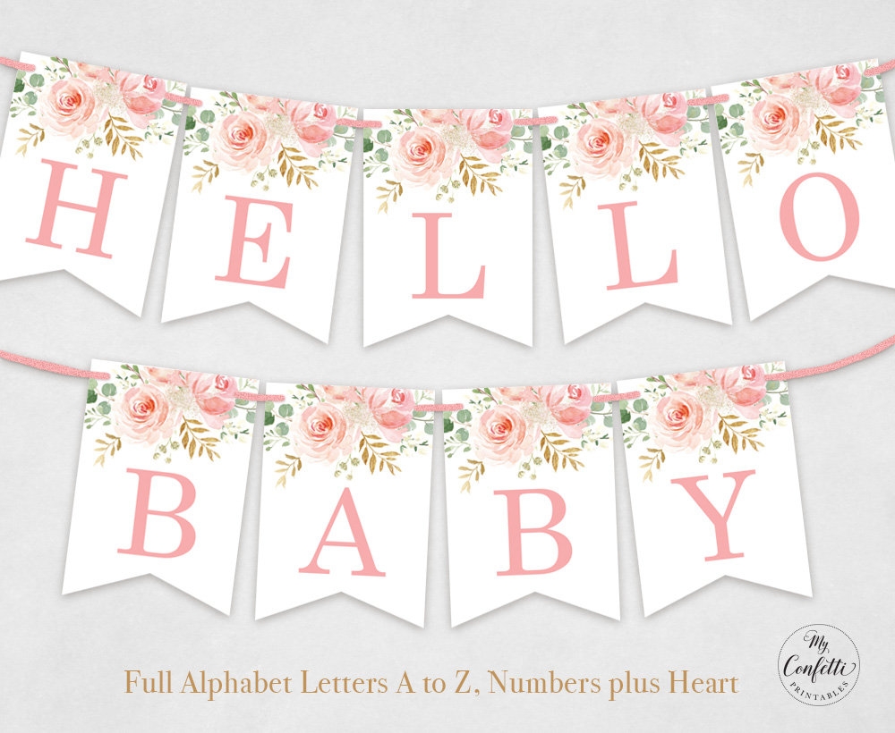 Printable Alphabet Banner Set Letters A To Z Numbers Plus Heart DIY Baby Shower Banner Birthday Blush Pink Floral Girl MCP820 MCP821 Etsy