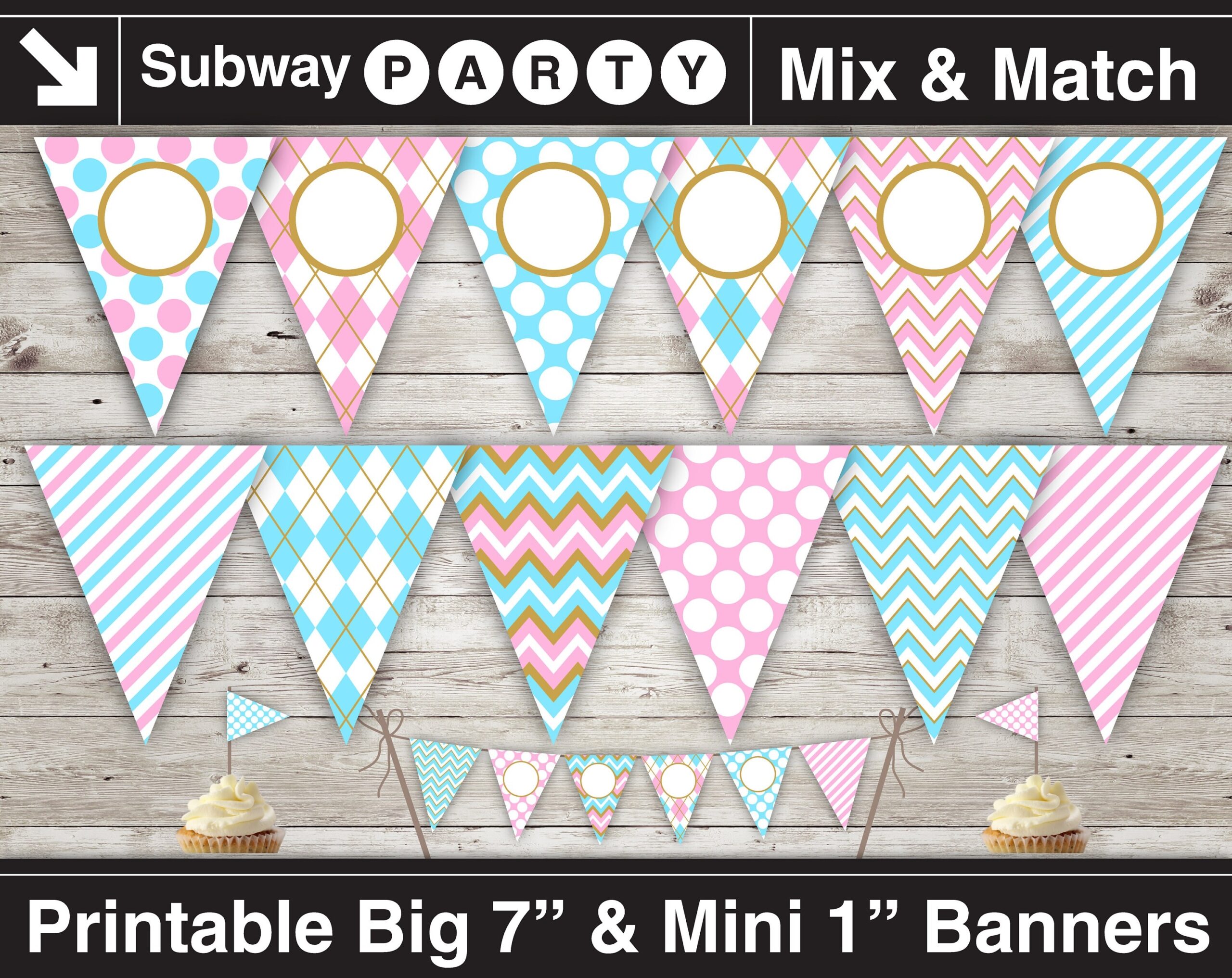Gender Reveal Baby Shower Party Printable Banner Mini Cake Bunting Blue Pink Gold DIY Editable Banner Blank INSTANT DOWNLOAD Etsy