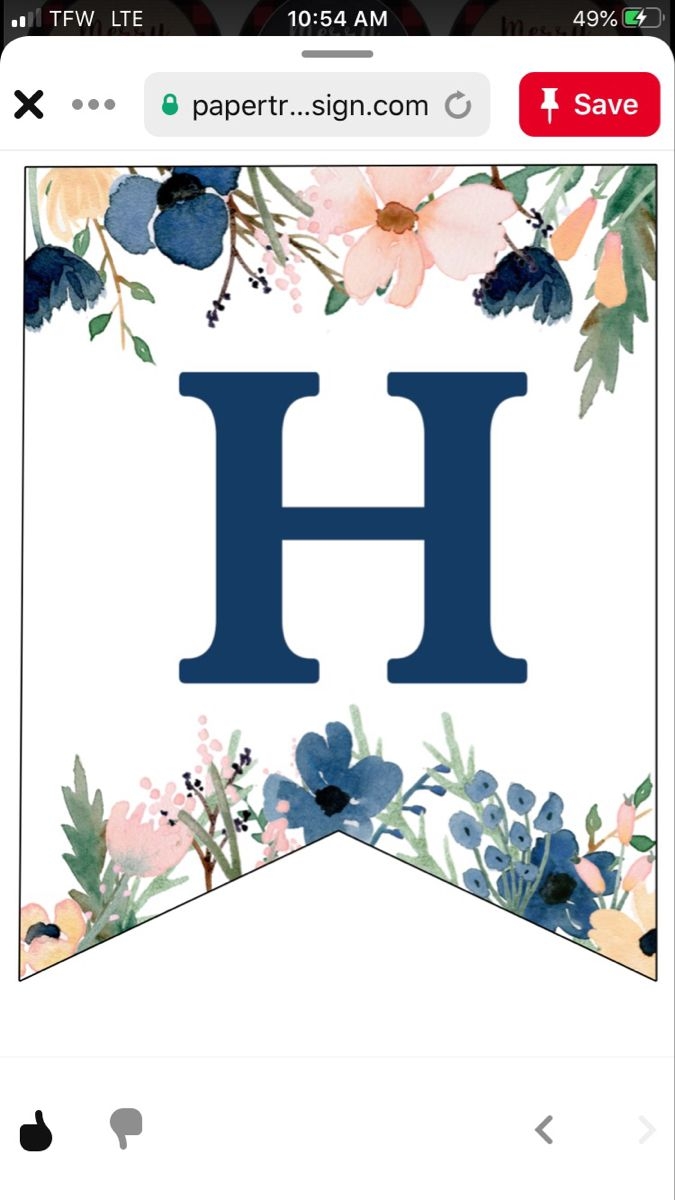Floral Letter H Printable
