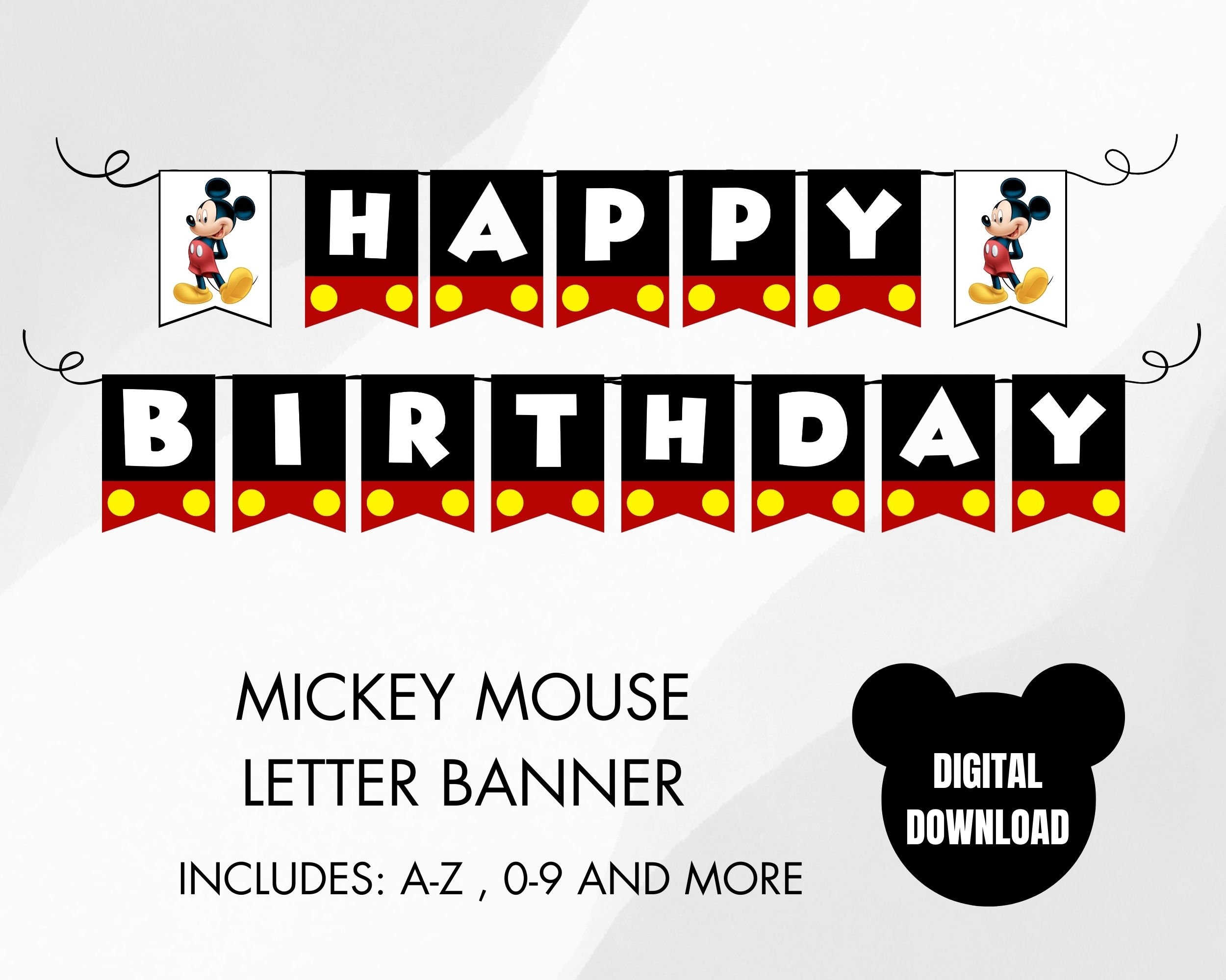 Mickey Mouse Happy Birthday Banner INSTANT DOWNLOAD Printable Mickey Mouse Bunting Banner Mickey Mouse Party Decorations Etsy