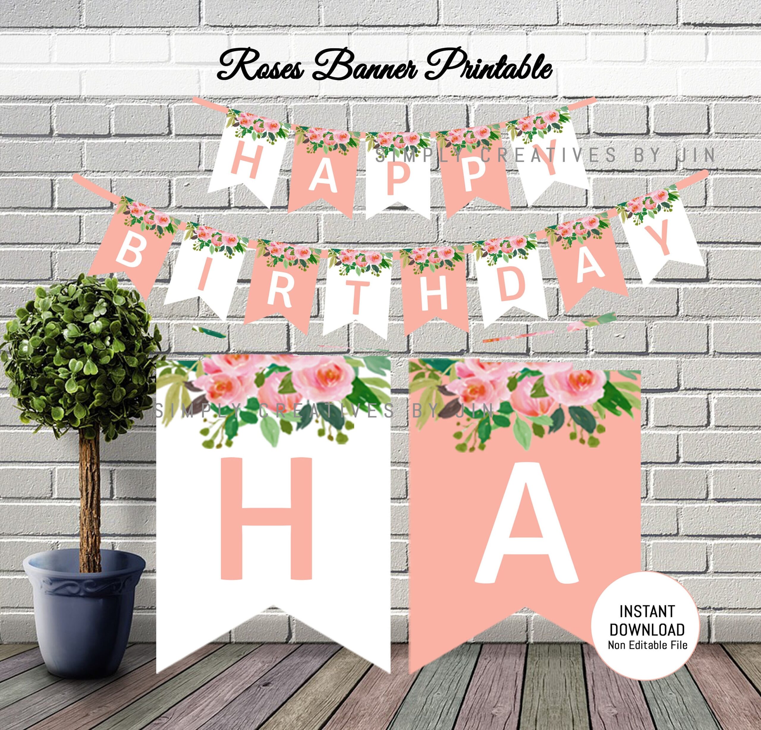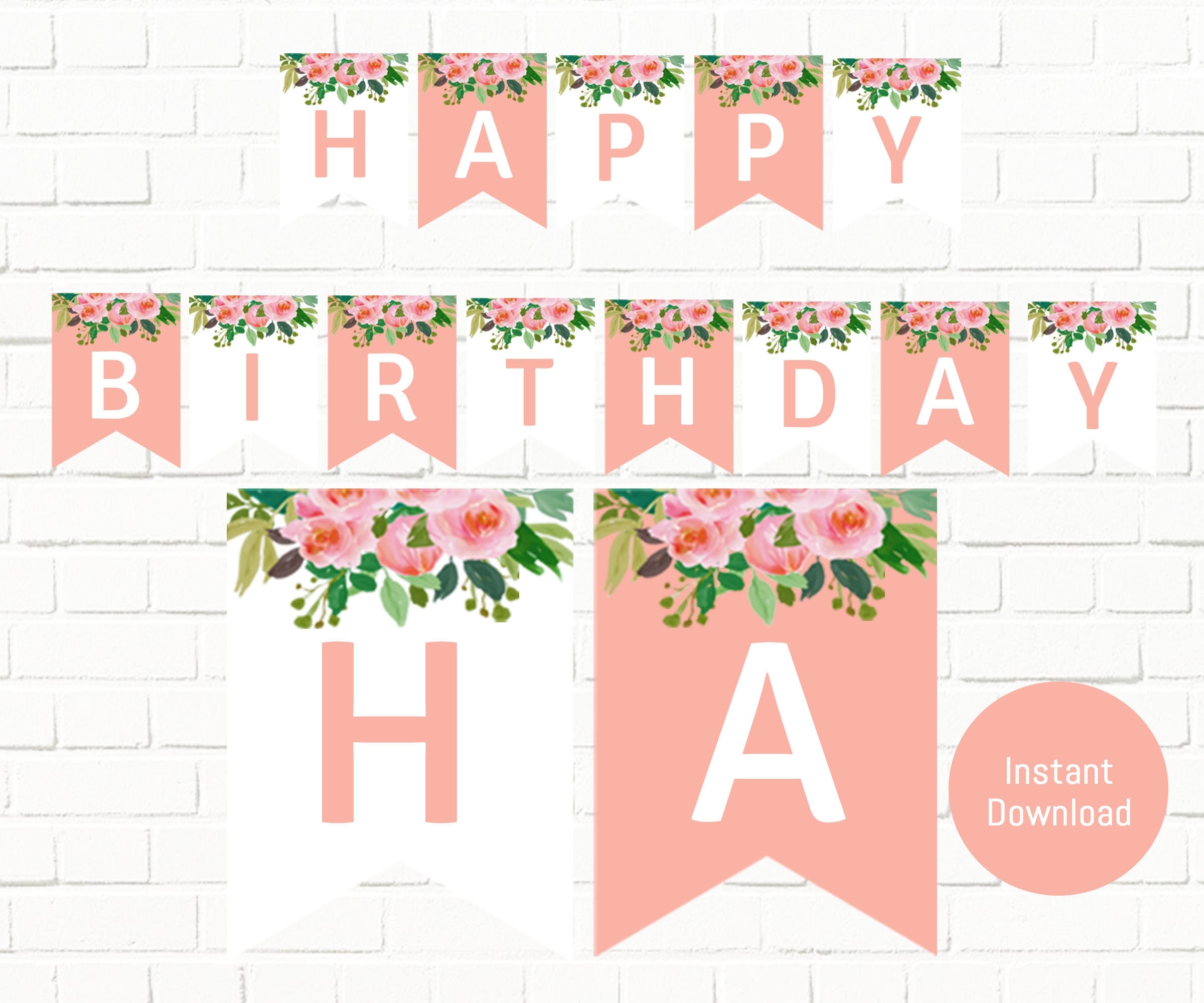 Flower Banner Instant Download Floral Happy Birthday Banner Camellia Flower Printable Banner Floral Decorations Decor Payhip