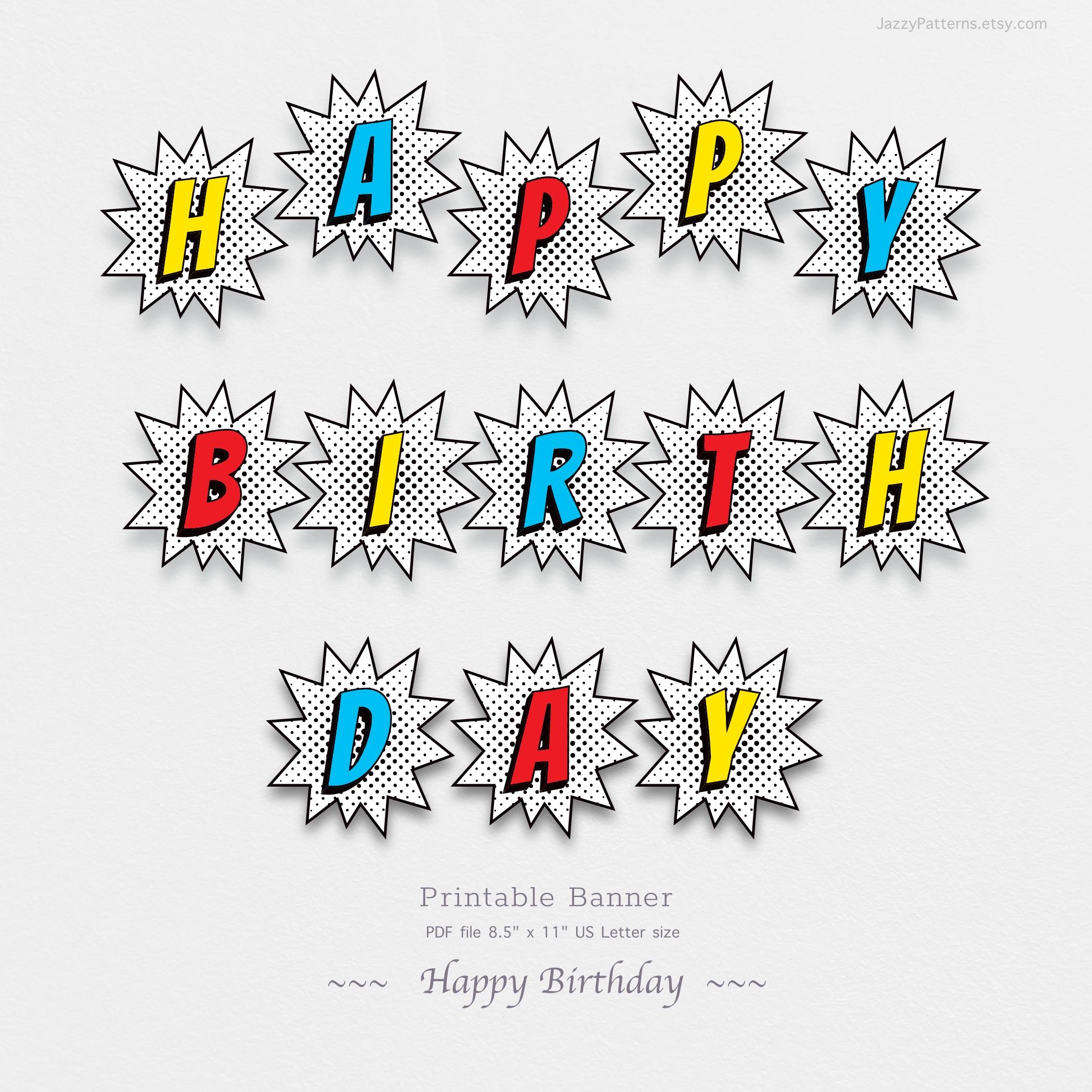 Superhero themed happy Birthday Printable Banner Etsy