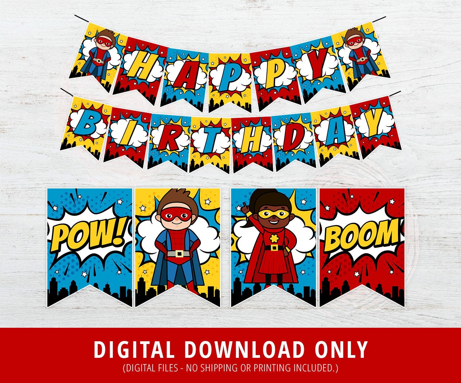 SUPERHERO Birthday Banner Printable Superhero Birthday Banner Comic Book Banner Superheroes Birthday Party Decorations DIGITAL Etsy