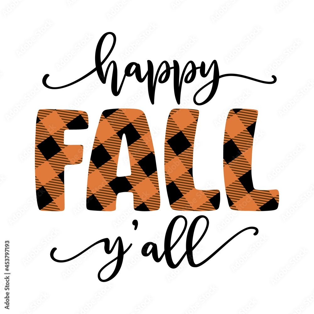 Happy Fall Y all Hand Drawn Vector Text Autumn Color Poster Good For Scrap Booking Posters Greeting Cards Banners Textiles Gifts Shirts Mugs Or Other Gifts Lumberjac Or Buffalo Print Stock Vector