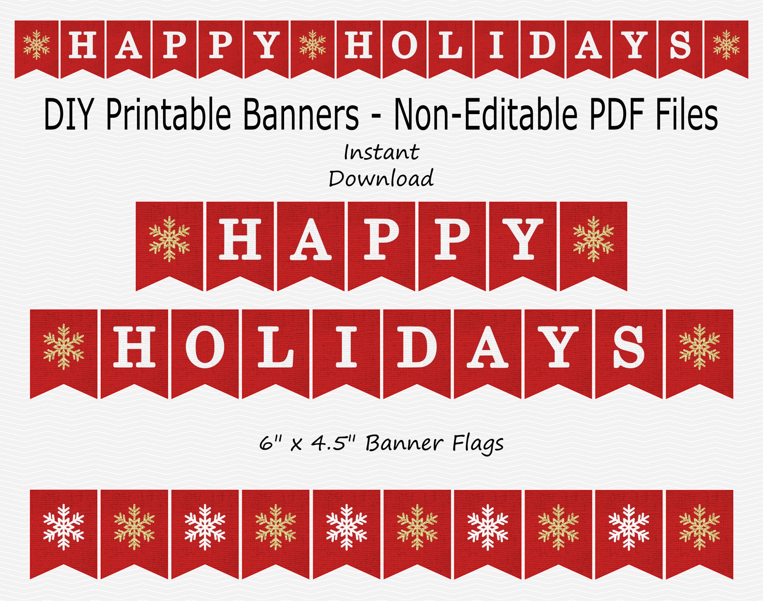 Happy Holidays Banner Printable Holiday Banner Happy Holiday Banner Printable Holiday Bunting Christmas Banner Printable PDF Etsy