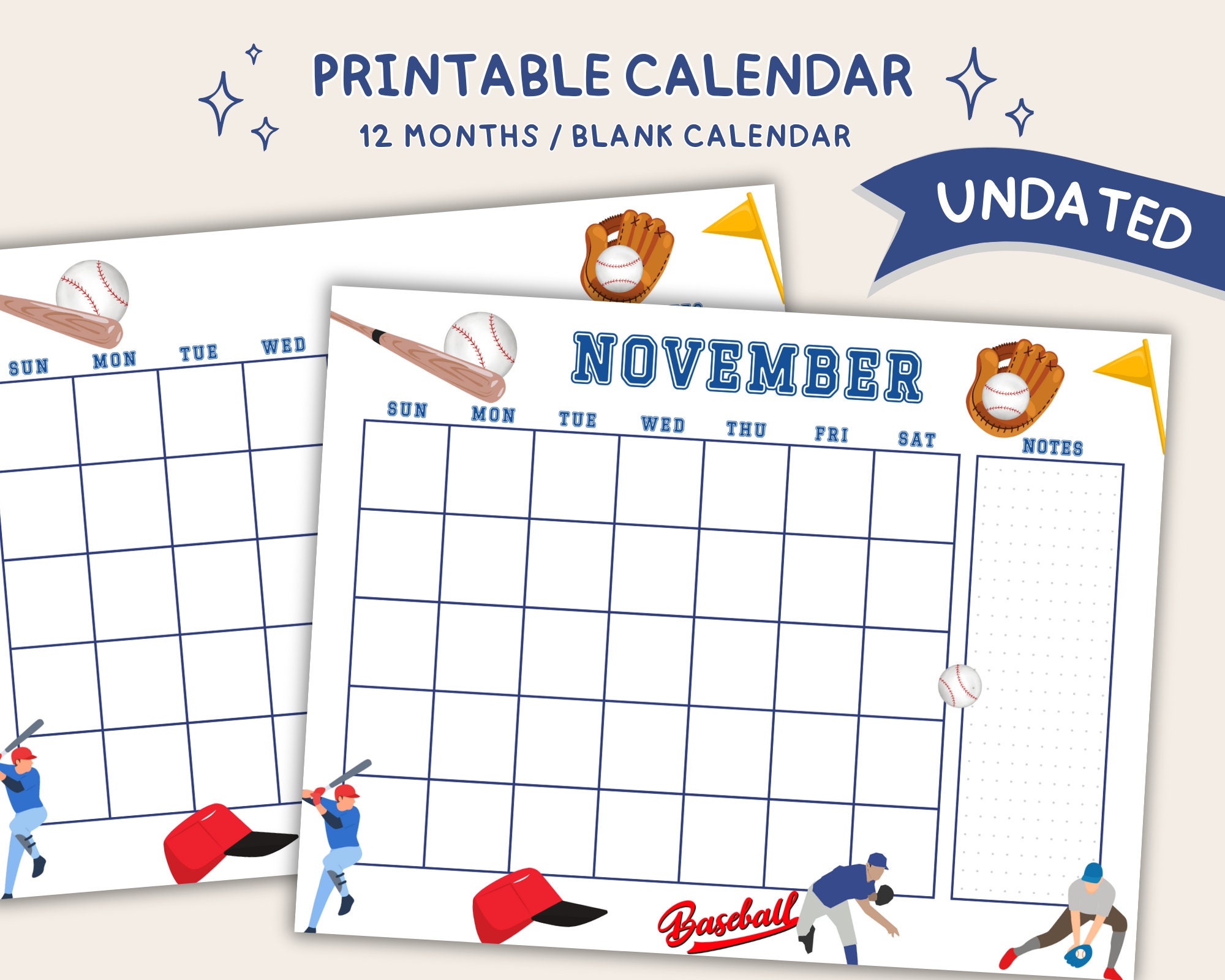 Baseball Undated Calendar Printable Baseball Monthly Milestone Baseball Cute Calendar Template Baseball Planner Printable Blank Calendar Etsy