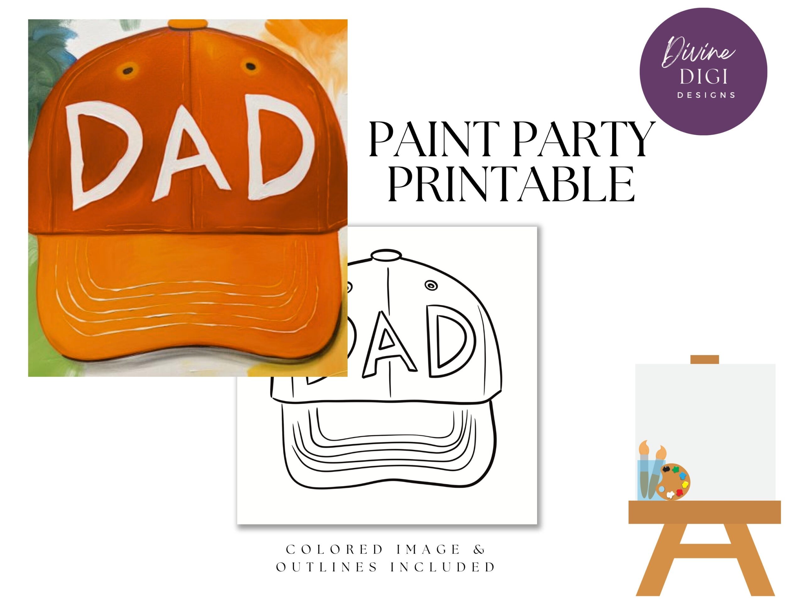 DIY Paint Party Printable Pre drawn Cute Dad Baseball Cap Instant Download Diy Canvas Art Paint Party PNG Digital Download Etsy