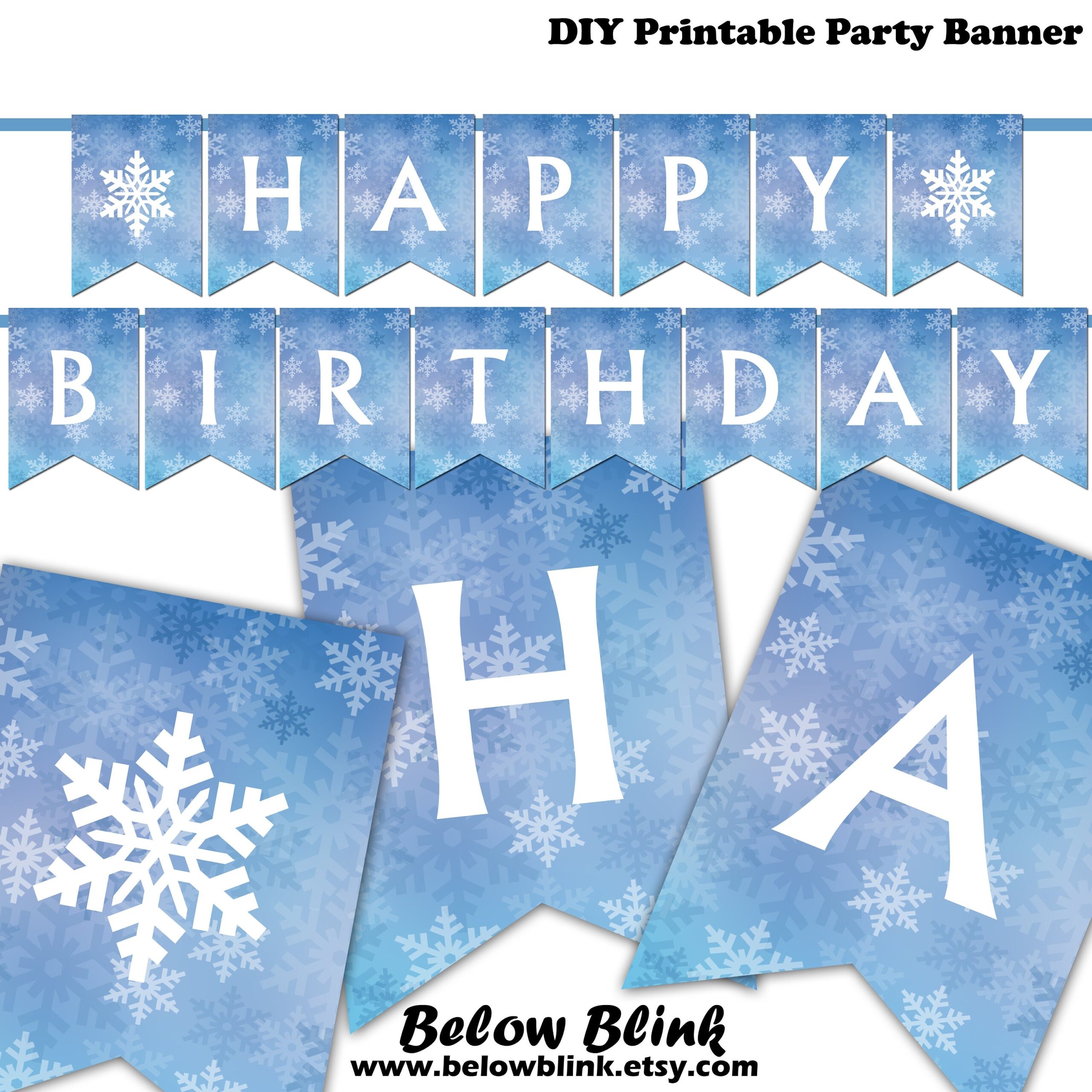 Frozen Happy Birthday Banner Printable Banner Winter Wonderland Party Decorations And Supplies Snowflake Instant Download DP951 Etsy Denmark