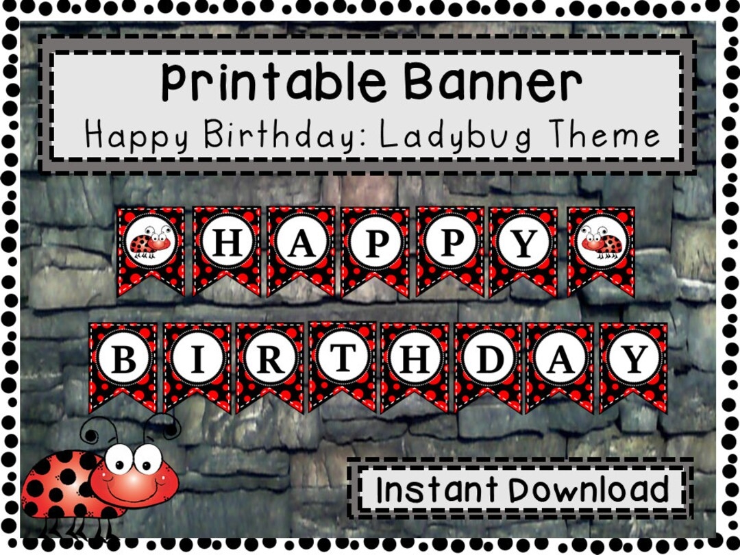 Printable Happy Birthday Banner Ladybug Theme Child s Birthday Banner Etsy
