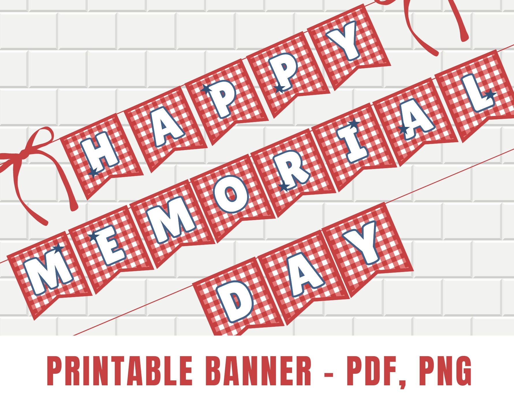 Happy Memorial Day Printable Banner PDF PNG Instant Download Red Plaid Red And White Gingham Red White And Blue Party Decorations Etsy