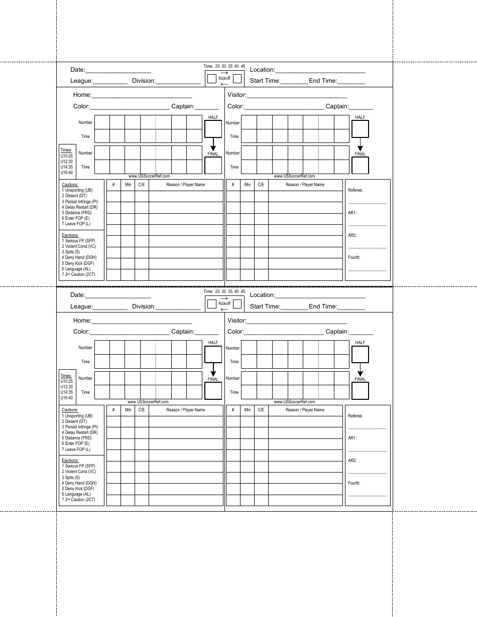 Whether you’re a seasoned referee or just starting out, this template will make your job easier. Say goodbye to messy handwritten notes and hello to a neat and organized game card that you can refer back to at any time.