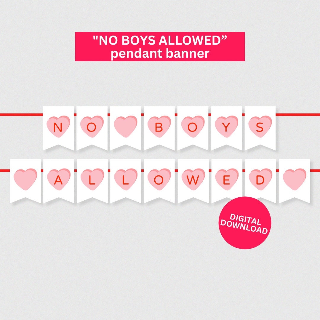 No Boys Allowed Banner Printable Galentine s Banner Valentines Party Decorations Printable Banner Valentine s Day Party Decor Etsy