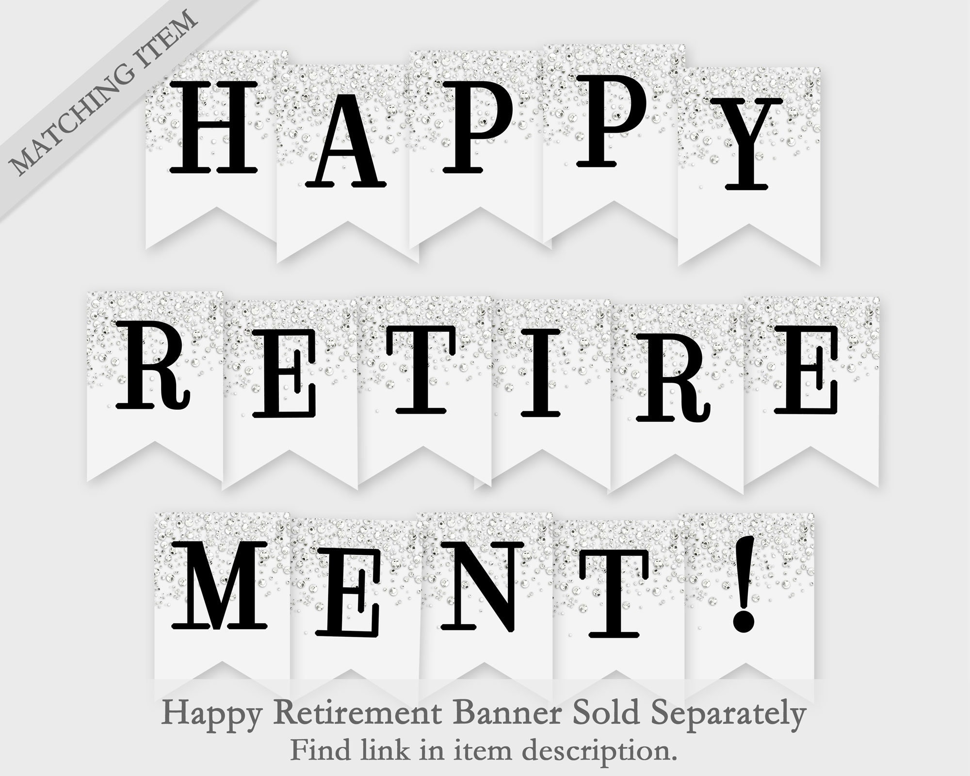 Happy Retirement Printable Banner Silver Confetti Glitters Printable PDF DIY Print Instant Download 4CG Etsy