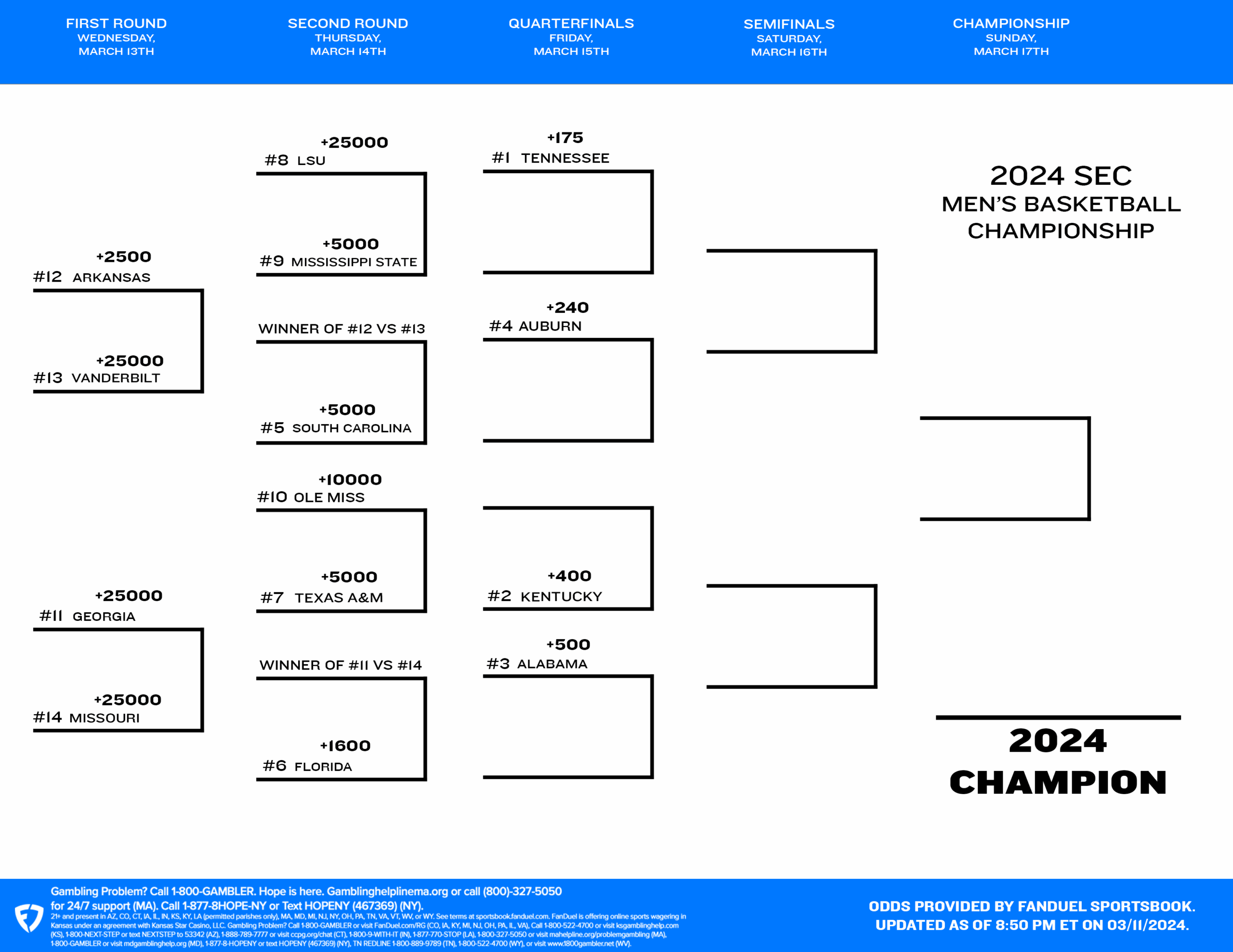 SEC NCAA Men s Tournament 2024 Printable Bracket Teams And Schedule FanDuel Research