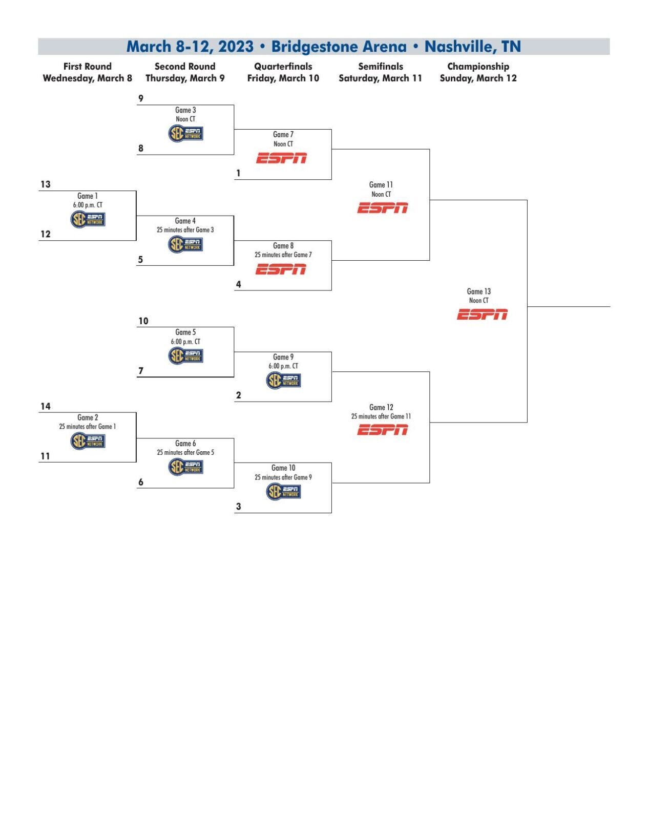 Sec Men Basketball Tournament Bracket Printable