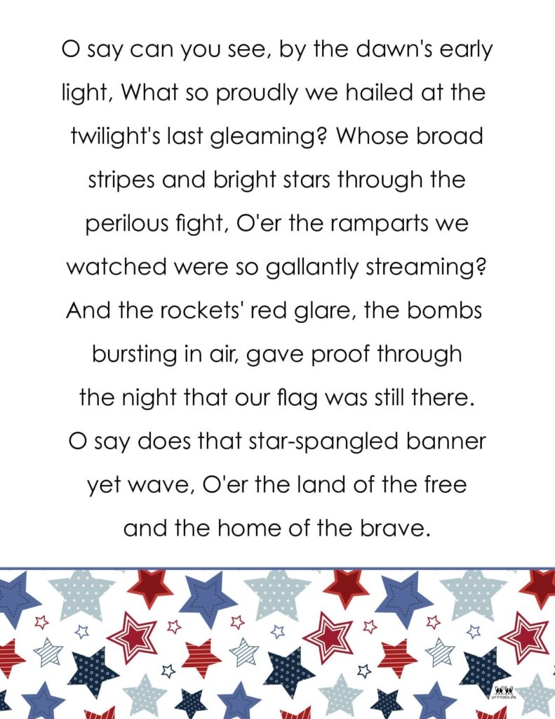 Star Spangled Banner Lyrics 10 FREE Printables Printabulls