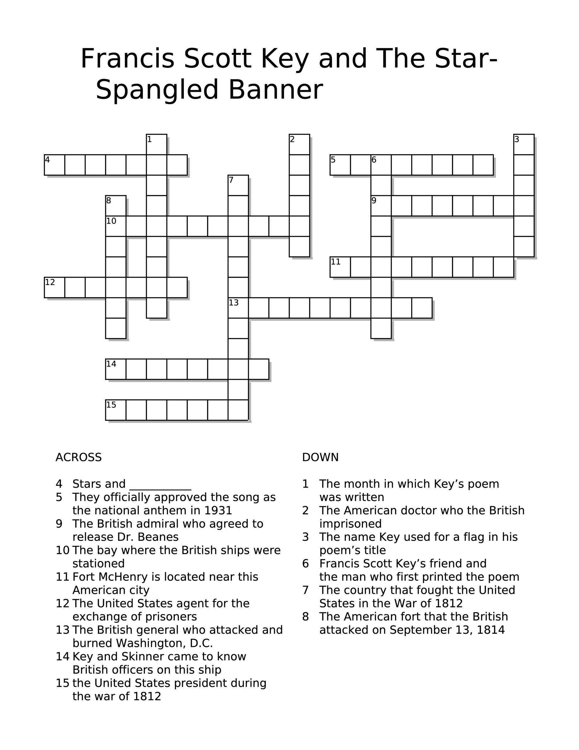 star spangled banner quiz printable