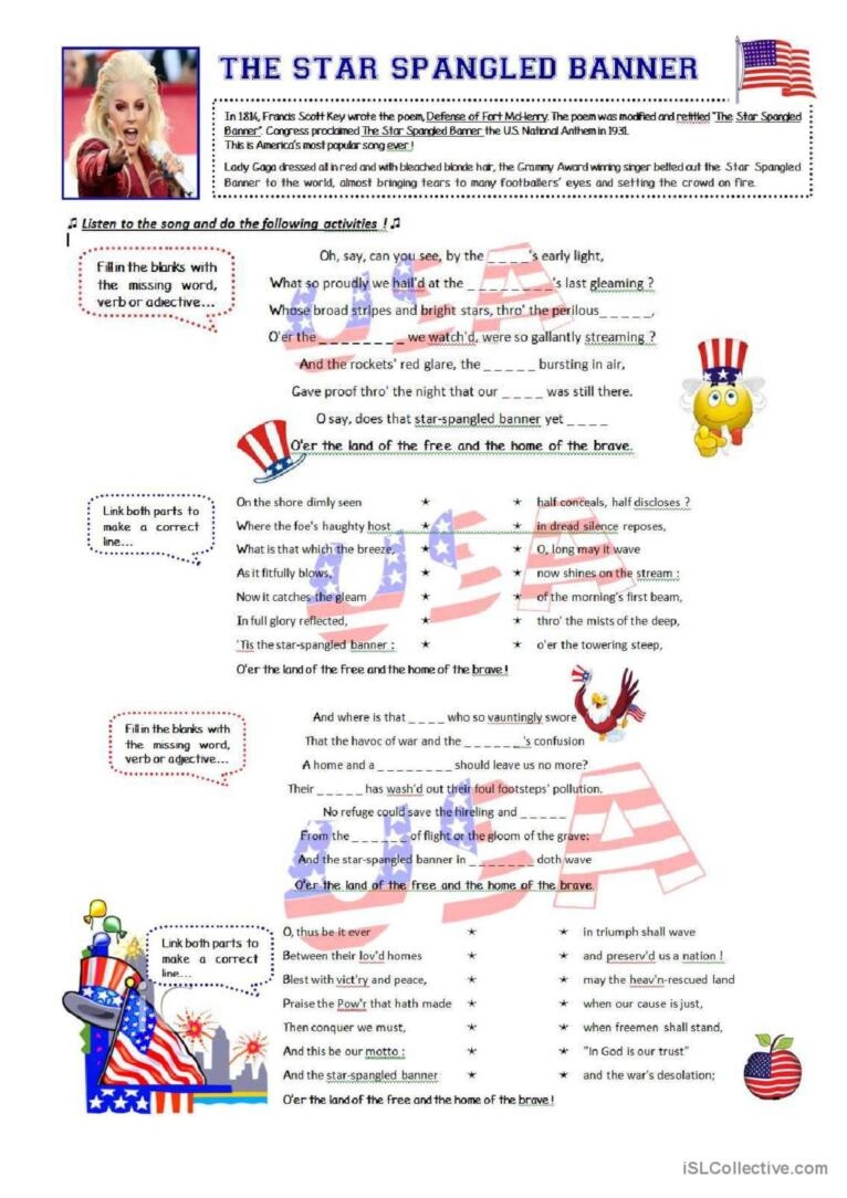 The Star Spangled Banner English ESL Worksheets Pdf Doc
