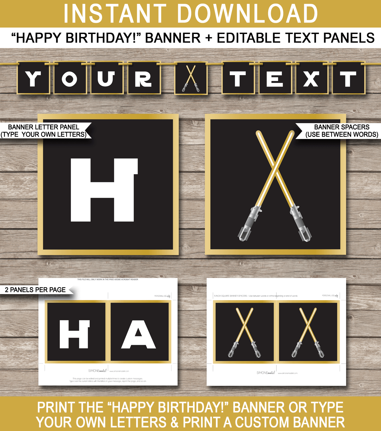 Star Wars Banner Printable ALL LETTERS LARGE 3 Design Instant Download Etsy